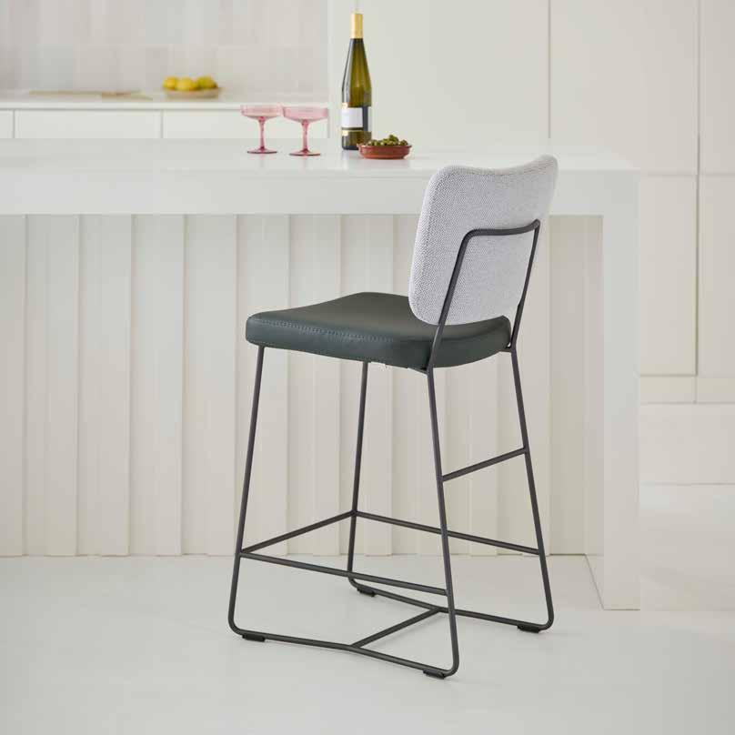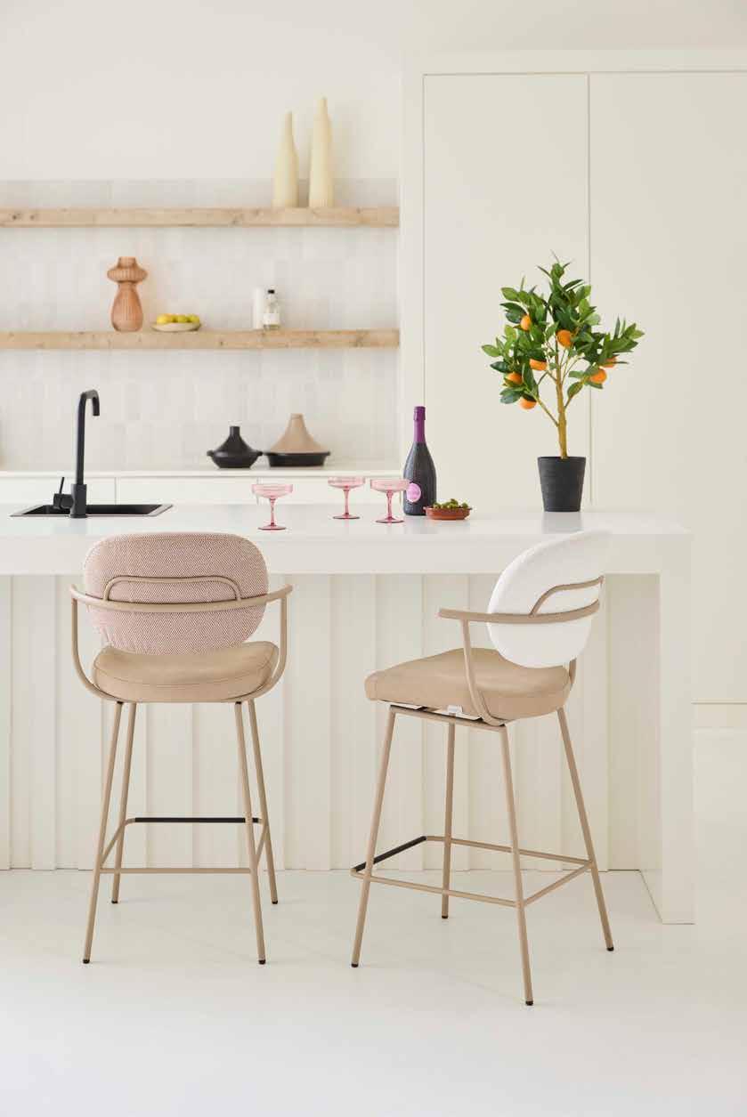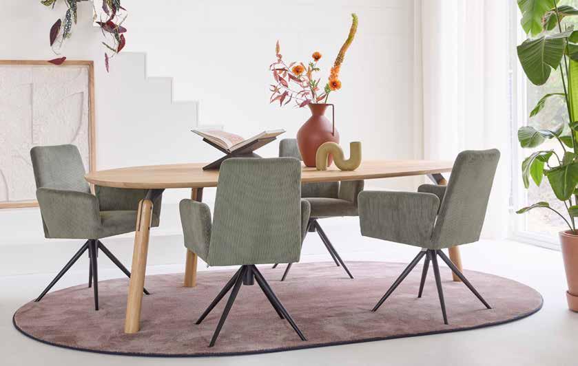 Stoel Kenza heeft een comfortabele hoge rug met gestikte ribben aan de voor- en achterzijde, is verkrijgbaar met 3 verschillende onderstellen en met of zonder arm. Style haar warm met een wollige boucléstof, stoer en zakelijk met zwart leer of geef haar een eigen twist.