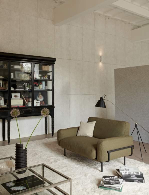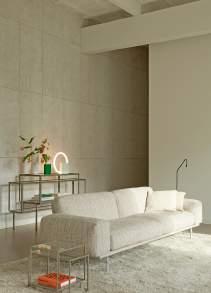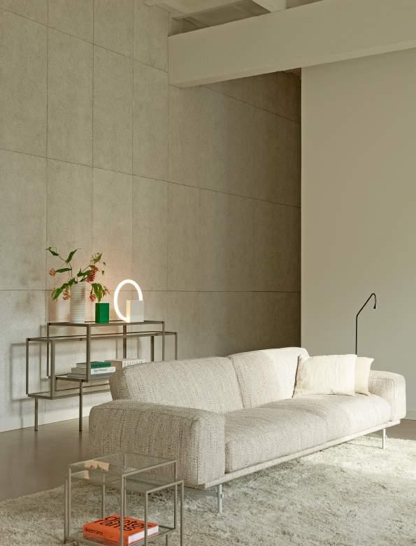 De 10010 Prime is in 2020 ontworpen door Studio Truly Truly. De bank is comfortabel en door de dikke, bijna wulpse zitting oogt deze zacht en toch architecturaal. De armkussens hangen net iets over de rand van het slanke onderstel, wat het ontwerp karakter geeft.