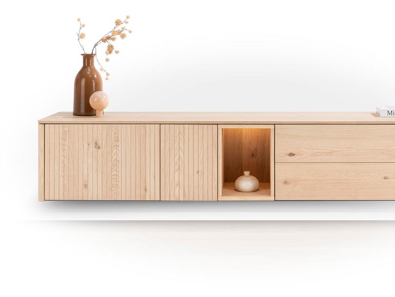 Design uit het verleden is een belangrijke inspiratiebron voor de trends van vandaag. En dat zie je terug in de collectie TRENTON. Onze designers combineerden stijlelementen uit de jaren ‘60 en ‘70 met eigentijdse vormgeving en moderne materialen. Het eindresultaat: kastmeubelen van eikenhout met afgeronde vormen en een retro latjesmotief. En jij bepaalt zelf je look! Kies je voor natural of clay? ”