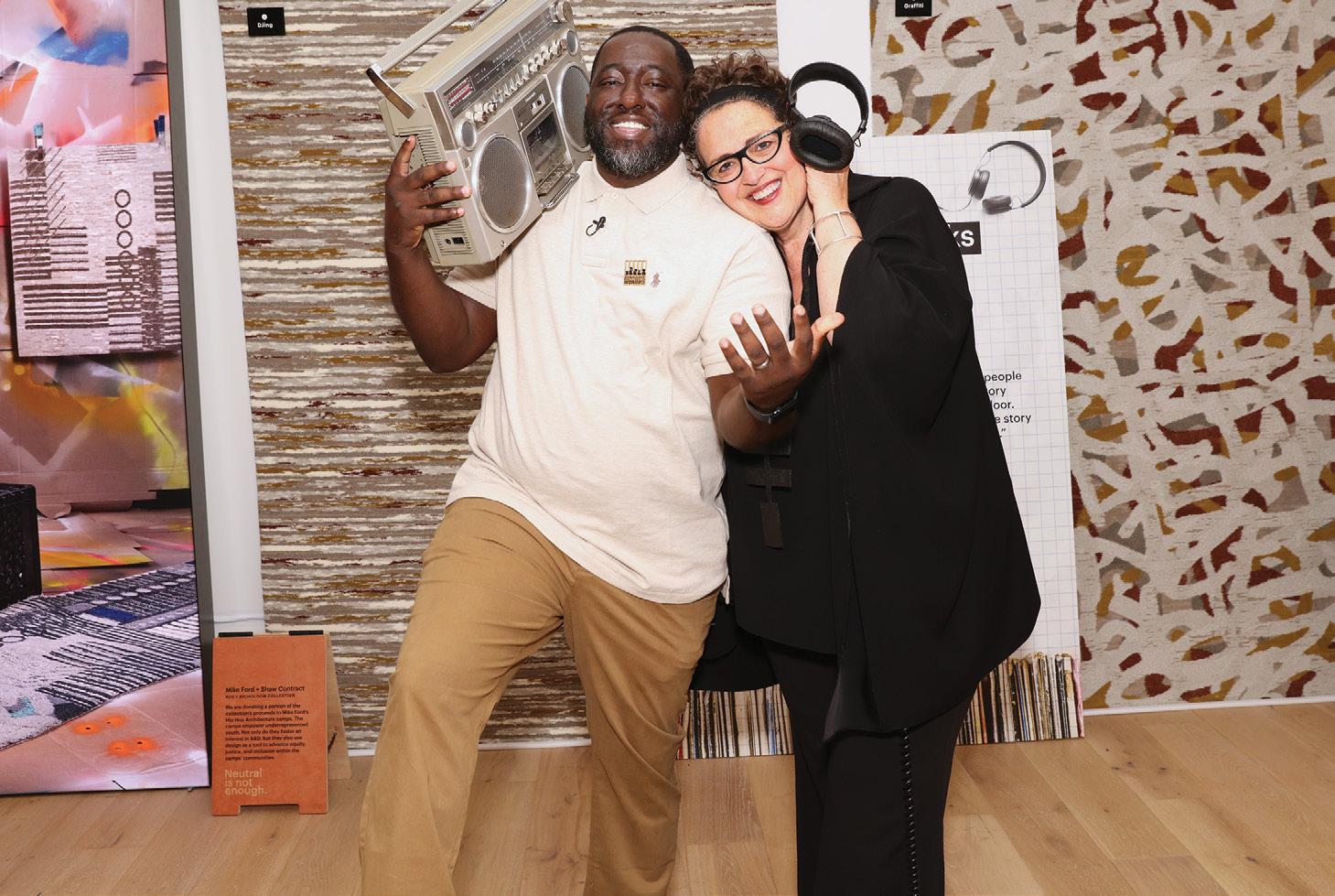 Hip hop architect Michael Ford and Interior Design EIC Cindy Allen with Ford’s collection for Shaw Contract
