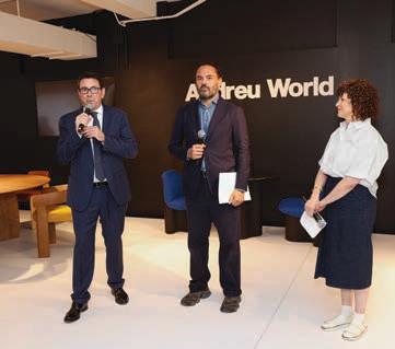 Jesús Llinares of Andreu World and Studio Urquiola’s Alberto Zontone with Interior Design’s Helene Oberman, who moderated a panel at the showroom