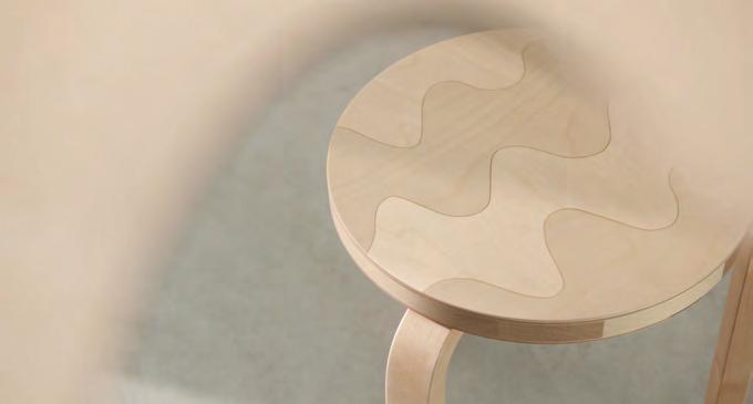 The Artek + Marimekko collection combines Marimekko’s print capabilities with Artek’s wood-bending know-how. Patterns from the Arkkitehti series, originally designed by Maija Isola for Marimekko, have been applied to birch furniture designed by Alvar Aalto.