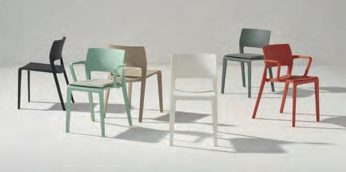 Arper’s Juno 02, made from recycled polypropylene sourced from post-industrial waste, has a seat cushion added. It features a non-slip system and an attachment system using PET clips, which hook onto the underside of the shell.