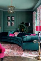Summery floral and retro prints from Indes Fuggerhaus in combination with colour-intensive velvets, as well as the pattern mix of summer fabrics from Englisch Dekor in expressive colours, give the Summer Vibes theme a casual atmosphere. They create a cheerful summer mood at home all year round.