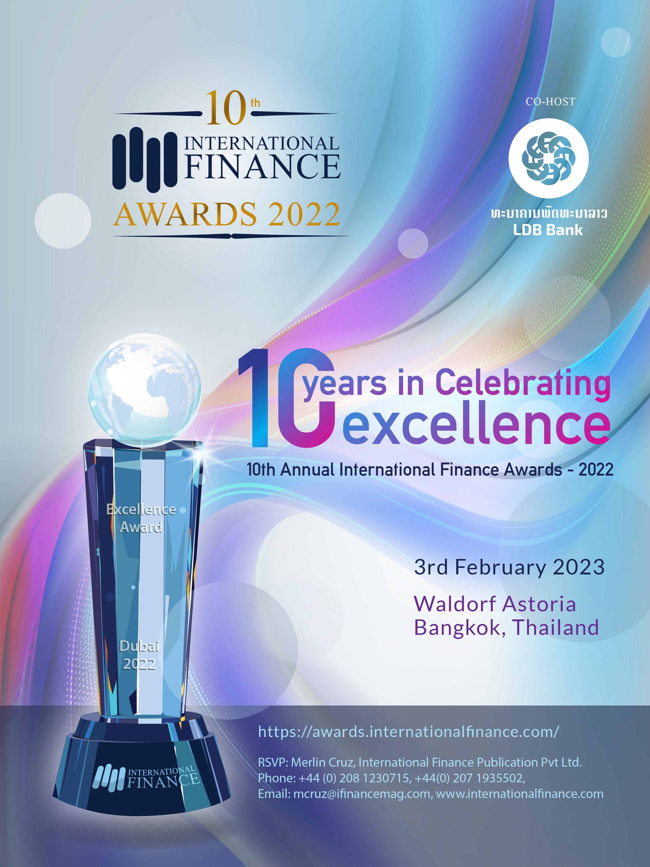 The Tenth Annual International Finance Awards will be held on January 19, 2023, at Jumeirah Emirates Towers, Dubai