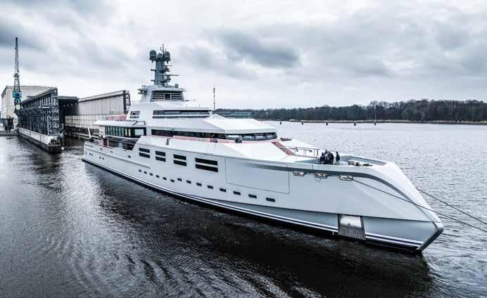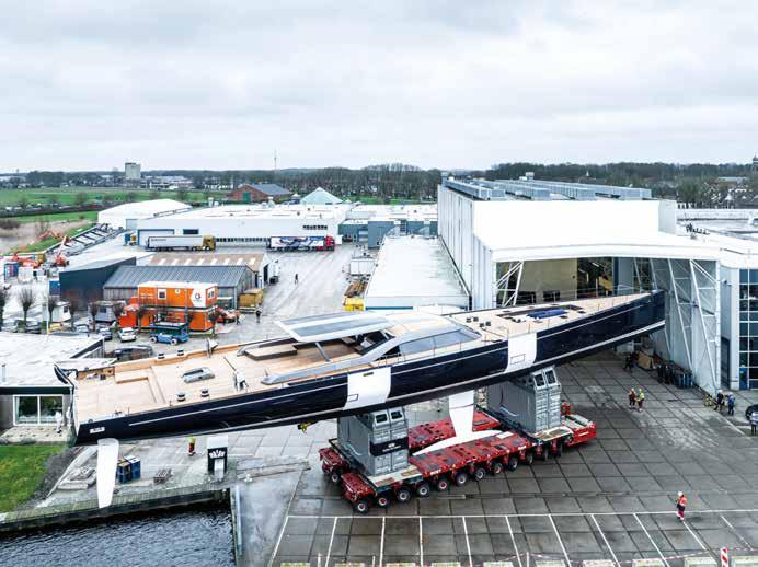 The Nilaya sloop has reached the o enho e ya in mste am fo the fina insta ations. his s e yacht is the fi st to utilise Royal Huisman’s new Featherlight™ design and production method. Continuous weight monitoring throughout the build of Project 405 aka Reichel/Pugh - Nauta 154 confi ms the Dutch builder has achieved its goal of s icin o the ei ht of its aluminium yachts.