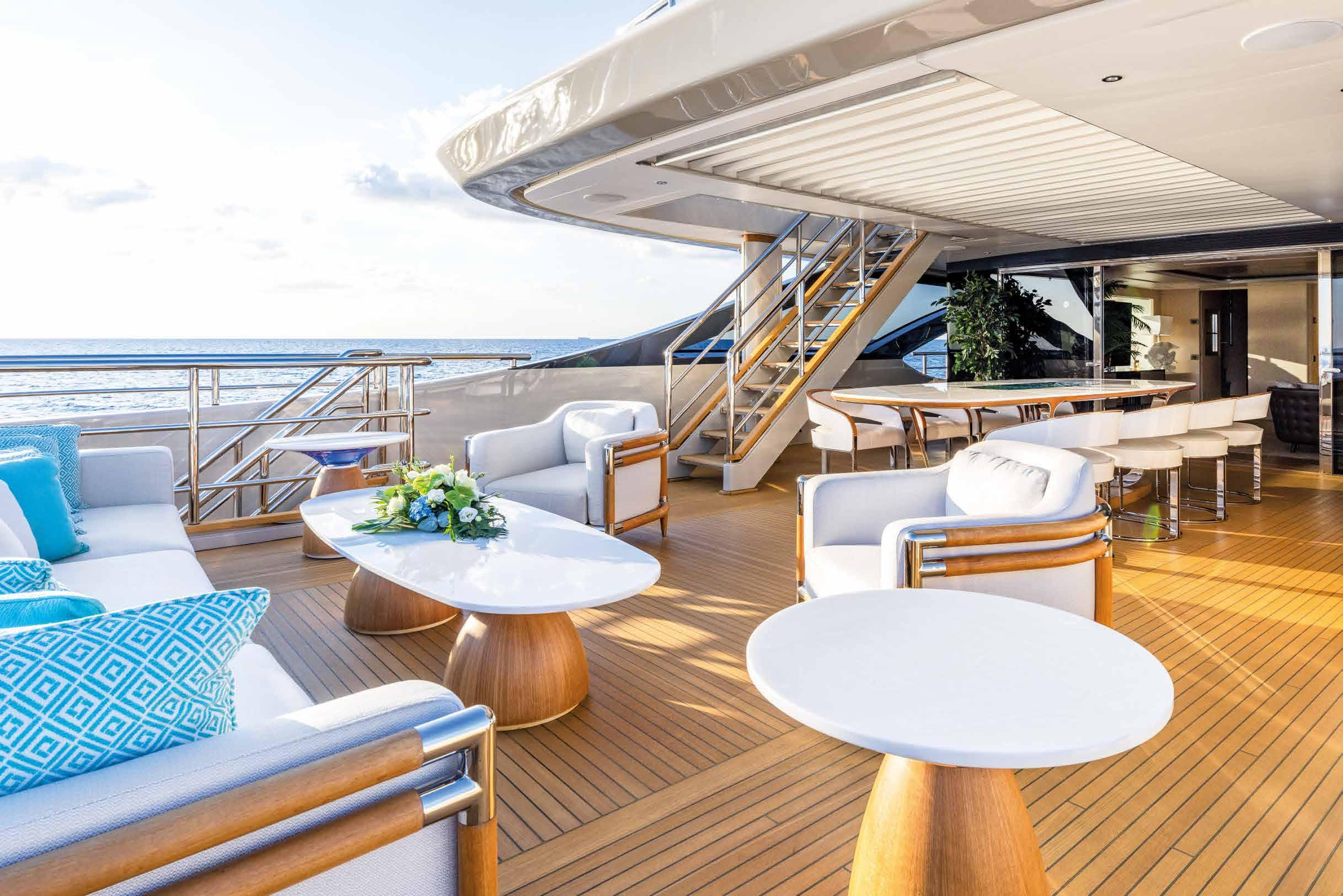 2012: due cabine più equipaggio, randa, fiocco, trinchetta avvolgibili, passerella e spiaggetta di poppa idrauliche, dissalatore, generatore. € 1.420.000 Excl. VAT.