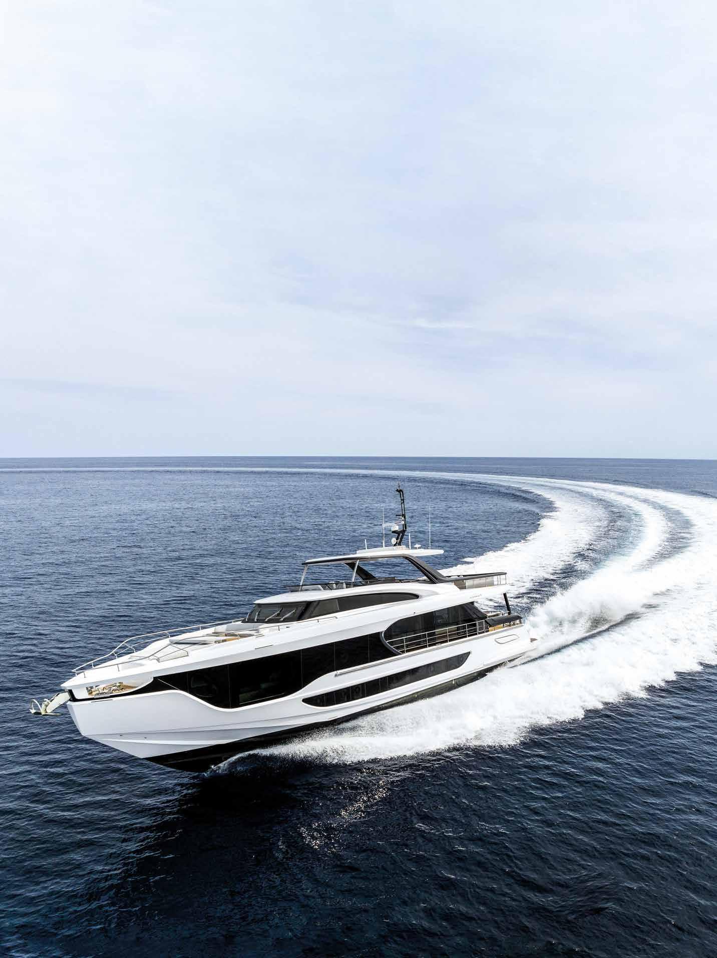The seductive Azimut S Series is the pinnacle of technological advancement and performance. Streamlined exteriors reveal a fiercely dynamic aesthetic, combining with innovative propulsion systems and last generation hull designs to deliver a uniquely sporty experience. An extensive use of carbon fiber also grants vast volumes without impacting on weight, offering ample and welcoming living spaces.