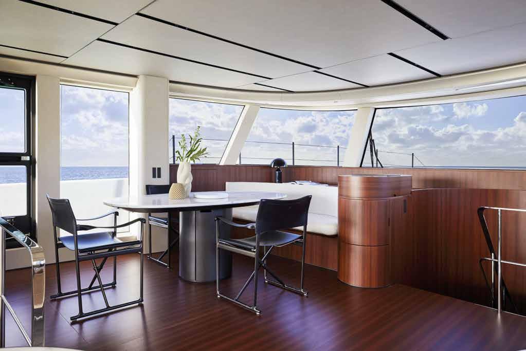 Benetti has launched the third unit of the B.Yond 37M series in Livorno. With a steel hull and aluminium superstructure, the yacht is equipped with an upgraded battery pack and an E-Mode hybrid system that allows the energy consumption on board to be optimised according to the specific use profile, while ensuring a significant reduction in CO2 and NOx. The owner has also requested a gym area and a cinema on the main deck.