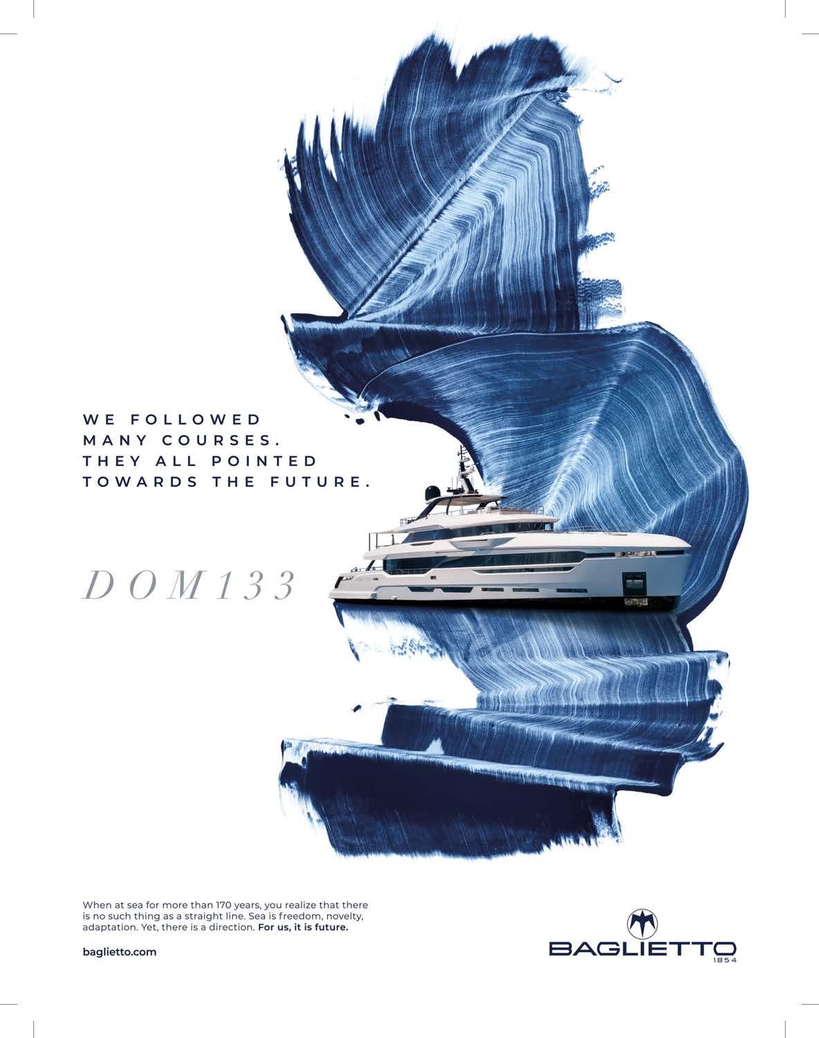 BAGLIETTO 116’ Year 2000, LOA 116 ft, Beam 24.5 ft, Horse Power 3 ,700 hp. Accommodating 10 guests. Price: $1,990,000. u Florida Yachts International sales@fyiyachts.com www.fyiyachts.com