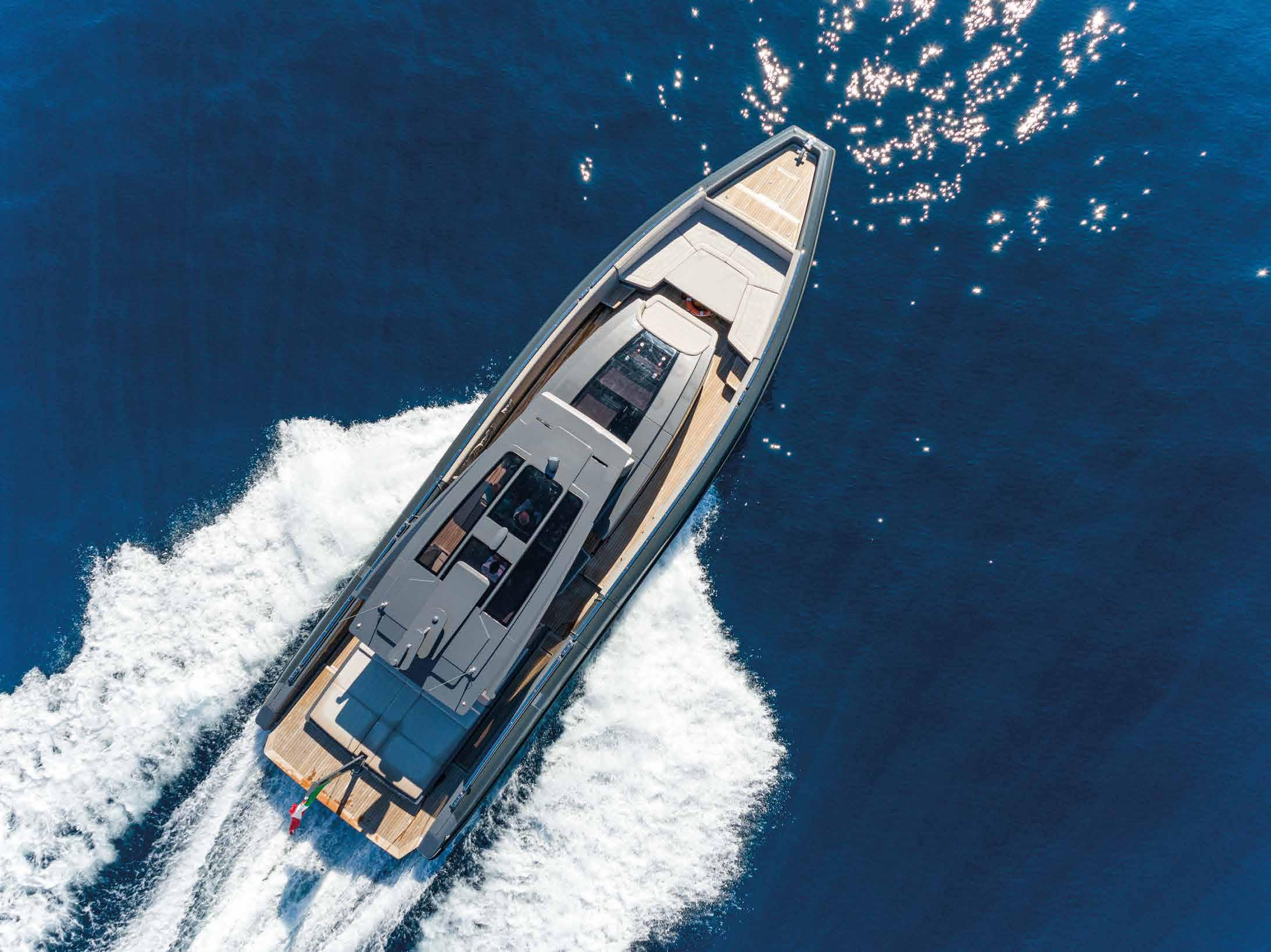 TT420, disegnato da Christian Grande, è il nuovo modello di Invictus Yacht che riprende gli stilemi del TT460. Il parabrezza integrale in cristallo, che rappresenta una soluzione inusuale su una barca di queste dimensioni, protegge durante la navigazione, assicurando al tempo stesso una corretta circolazione d’aria anche in rada, grazie a un sistema di apertura frontale.