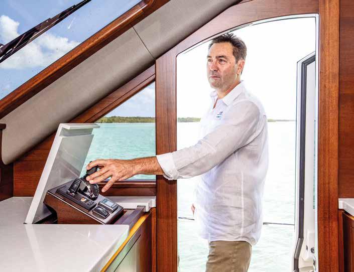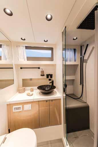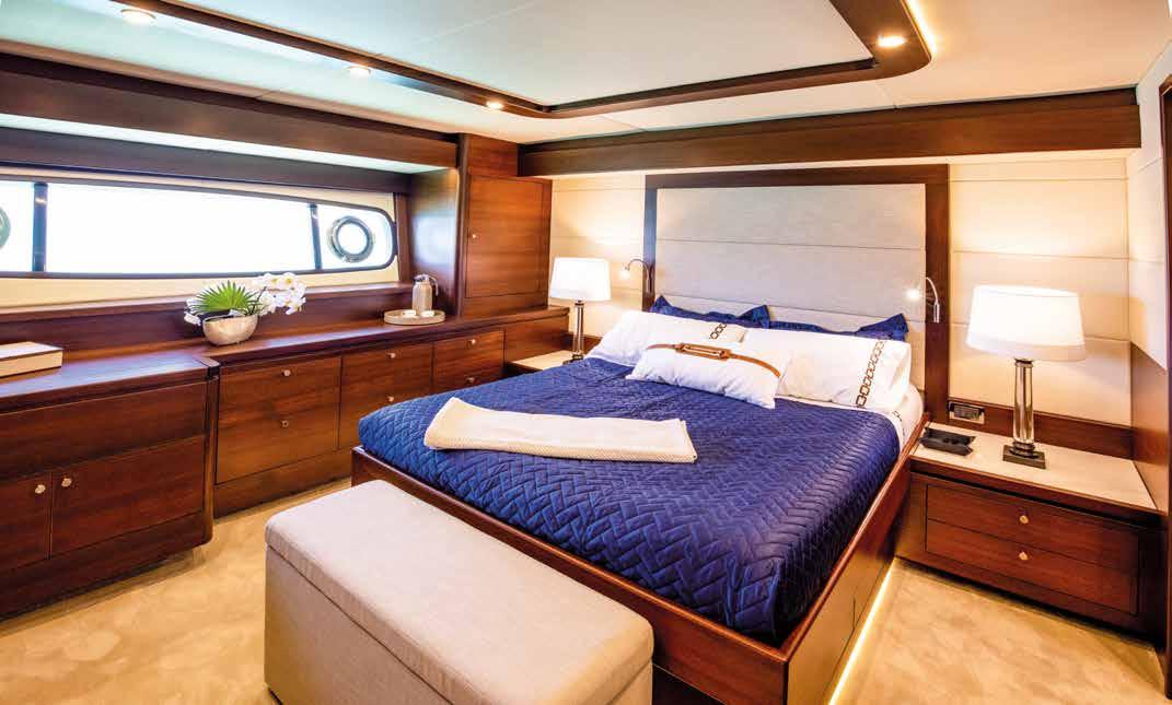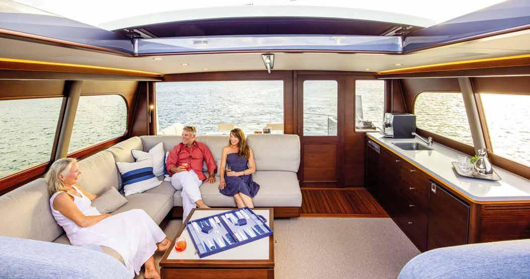 The Pearl 72 made its o cial European debut at the Boot in Düsseldorf. The layout features two master cabins, one forward with a private entrance