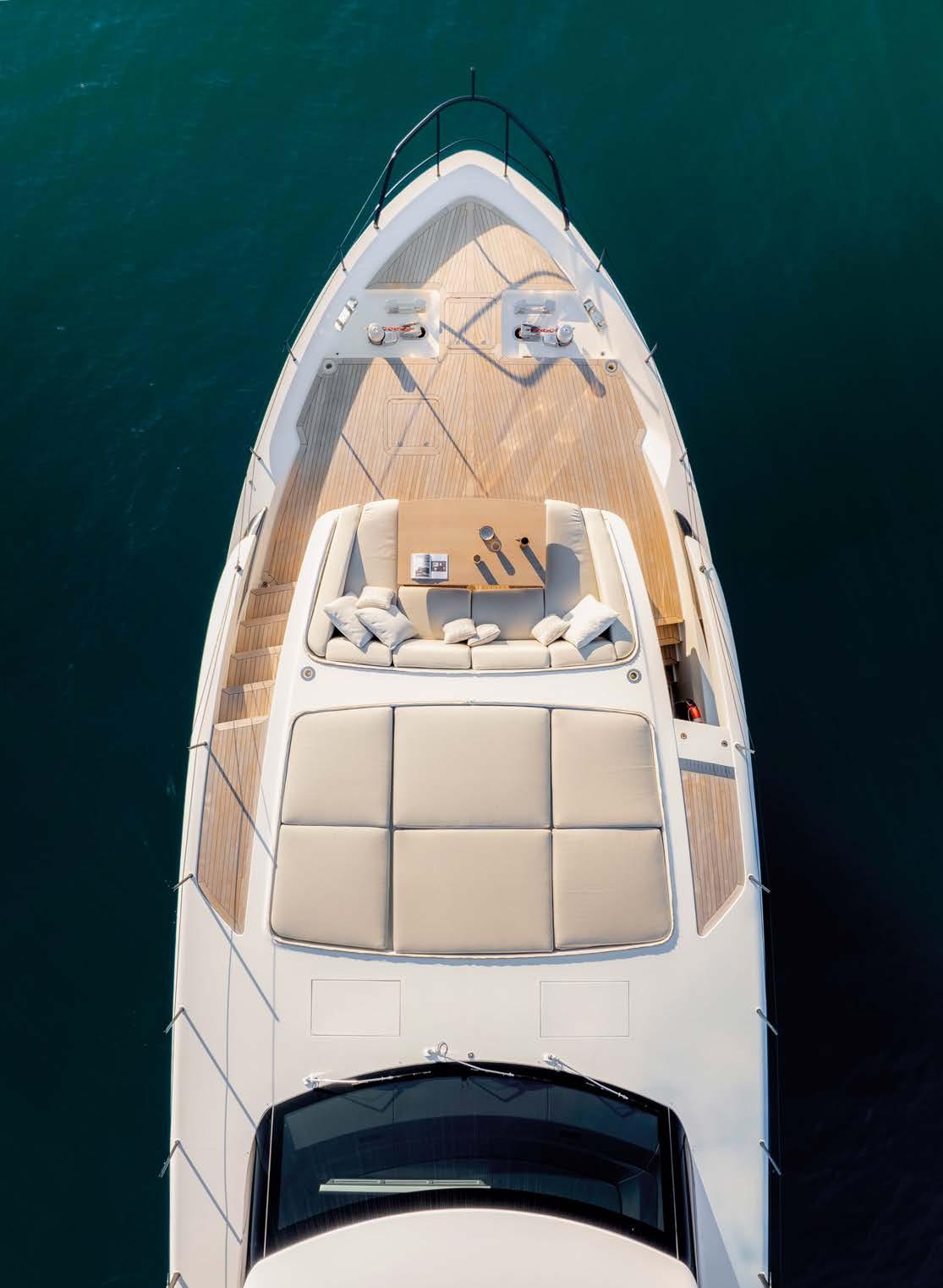 Year 2018, Cruising Speed: 24 kn, Maximum Speed: 29 kn, Beam: 20’ 3’’, Max Draft: 5’ 8’’, Fuel Tank: 1 x 1576|gallon, Fresh Water: 1 x 290|gallon, Holding: 1 x 240|gallon, Cabins: 4, Heads: 5. $3,499,000 u Denison Yachting sales@denisonyachting.com www.denisonyachtsales.com
