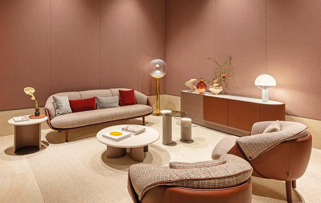 Poliform ha presentato un’installazione immersiva e multisensoriale. Un ra nato gioco di assi architettonici de nisce il la out suddividendo gli interni in aree distinte e scandendo il ritmo dell’abitare contemporaneo in continuo dialogo con l’esterno e la natura circostante uesta elegante uinta architettonica ha ospitato le ultime creazioni di ean- arie assaud Emmanuel Gallina e Soo Chan.