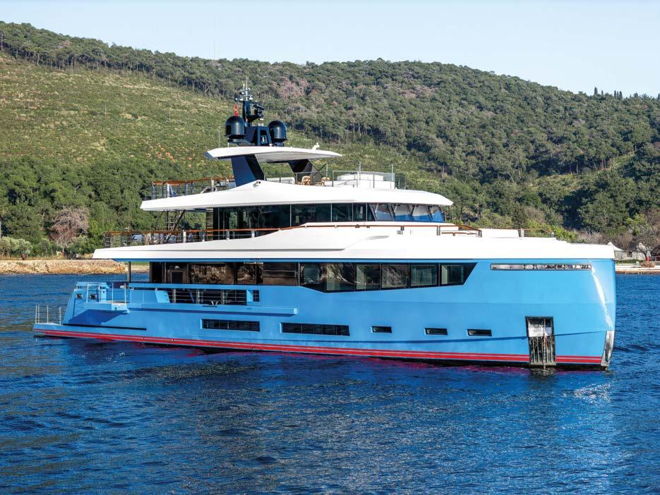 Anno 2018/2022, lunghezza 29,60m - larghezza 7m, 4 Volvo Penta 1200 - 900 Hp, 5 cabine + 3 cabine equipaggio - Prezzo € 5.690.000.