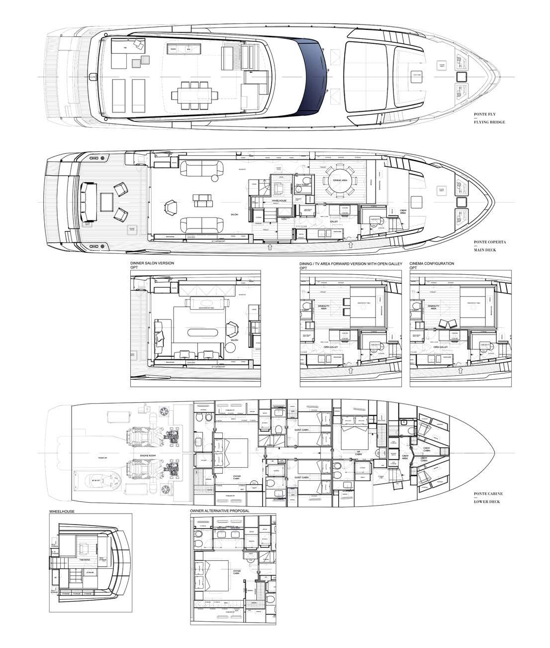 CUSTOM LINE NAVETTA 27 nno refitting 2024, lunghezza 27,45m - larghezza 7m, 2 Man V12 - 1.200 Hp, 4 cabine + 2 cabine equipaggio - Prezzo €1.990.000.