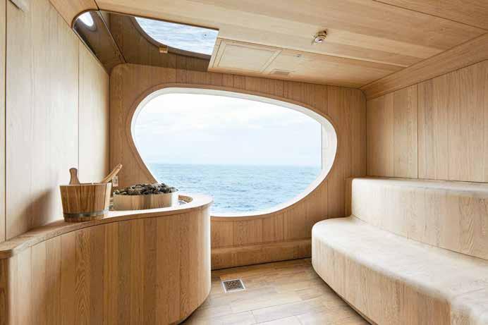 Build 2023, Length 97’ 3” (29.64m), Builder Ocean Alexander, Guests 10 Cabins 5, Crew 4, Draft 5’ 11” (1.80m), Beam 22’ 5” (6.83m) Asking Price $ 15,995,000 u Northrop & Johnson www.northropandjohnson.com