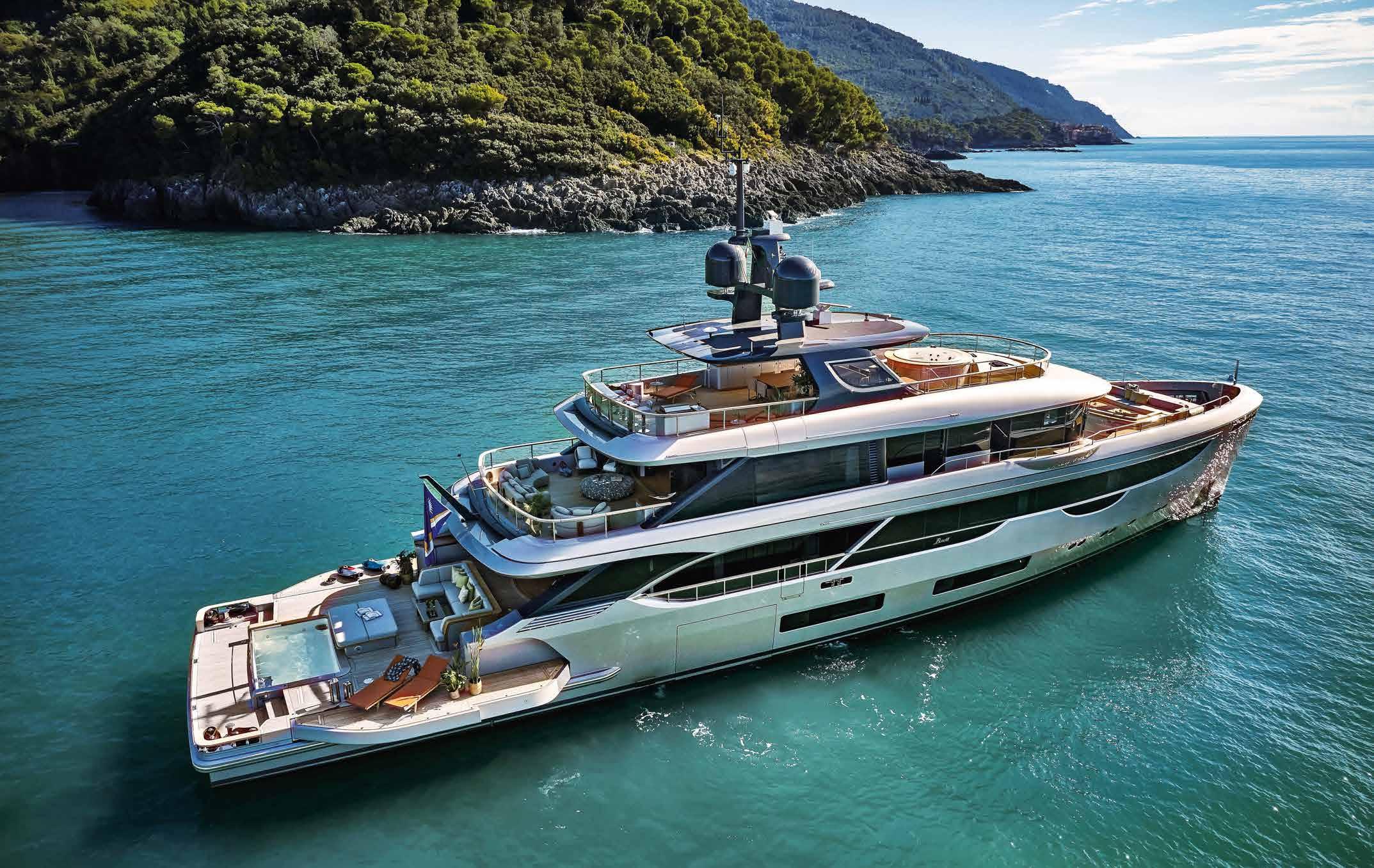 Varato il terzo Pershing 140 costruito in alluminio e disegnato da Fulvio De Simoni. Si tratta del primo modello del brand realizzato nella Super Yacht Yard Ferretti Group di Ancona, specializzata nella costruzione di yacht in acciaio e alluminio oltre i 40 metri. Il décor è completamente personalizzabile dall’armatore. Motorizzato con quattro Mtu 16 V 2000 M96L di 2.600 cavalli ciascuno, è in grado di navigare alla velocità di 38 nodi.