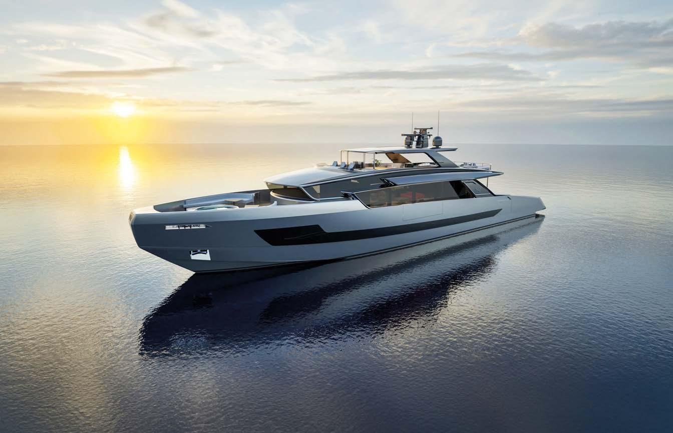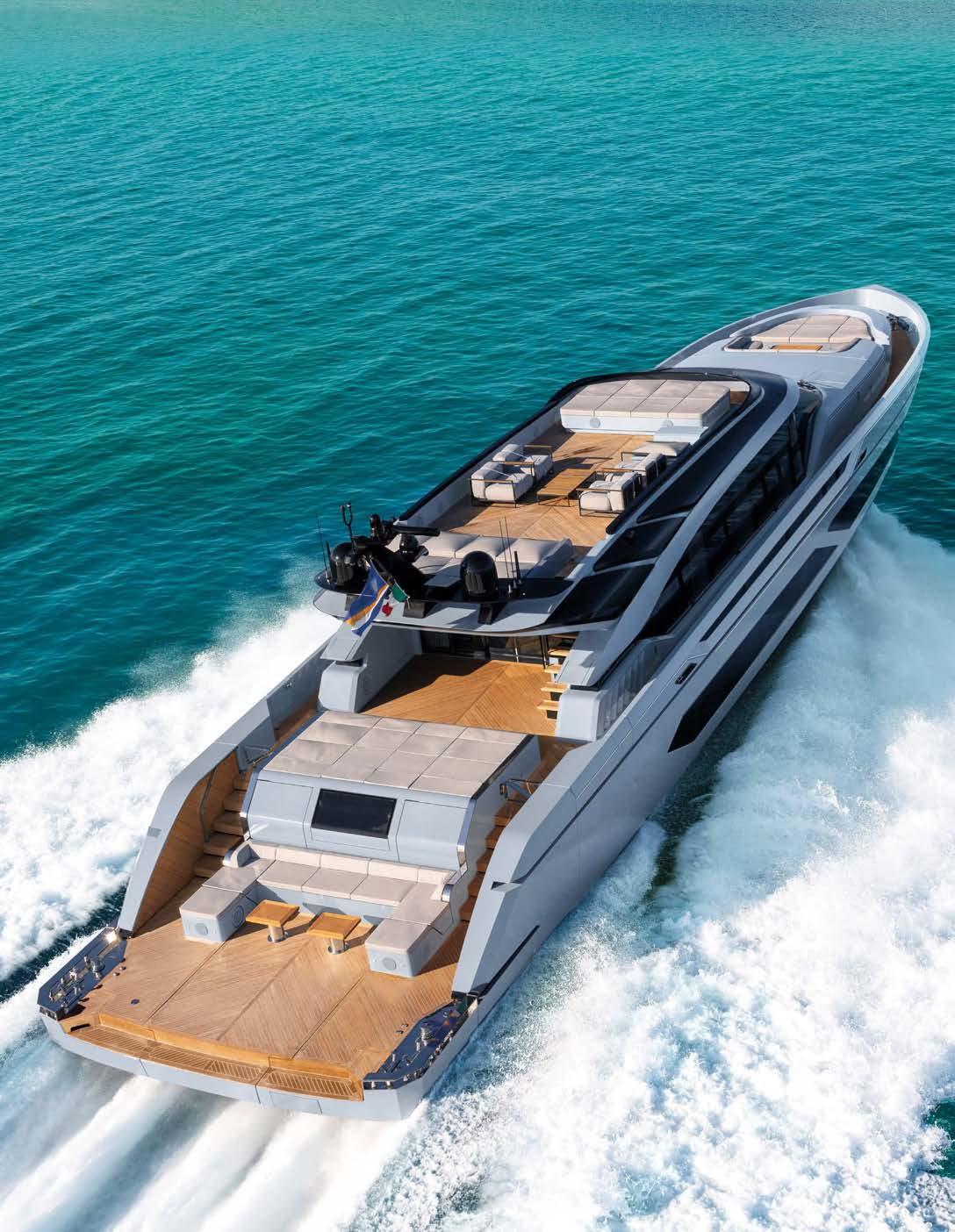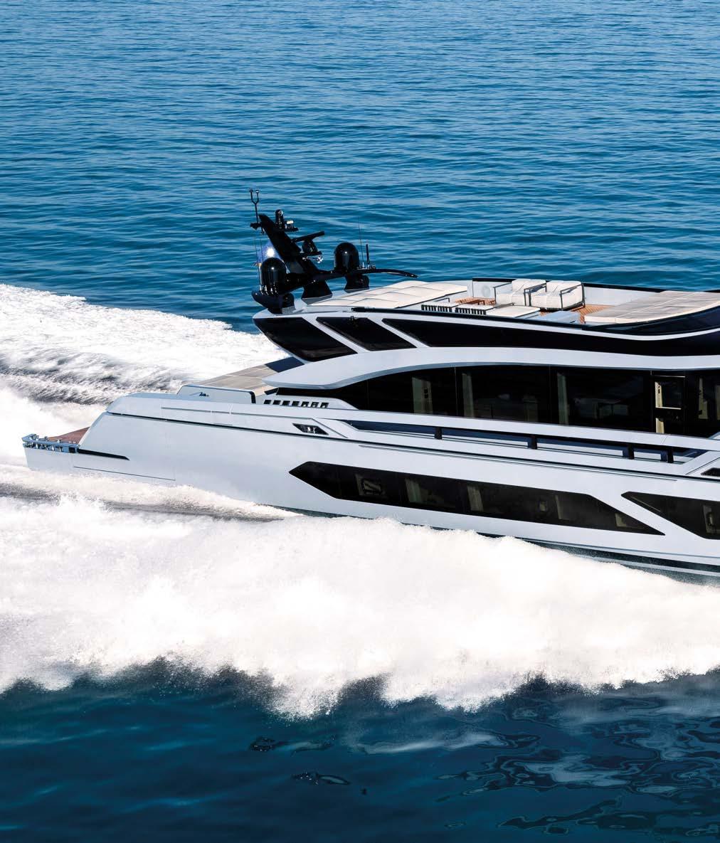 Year 2023, LOA 22.85 m, Beam 5.86 m, Cruising Speed 41 kn, Max Speed48 kn, Engines 2xMTU 2638hp. Asking Price: € 5,600,000 u Idea Yachting Limited +377 99901094 info@ideayachting.com