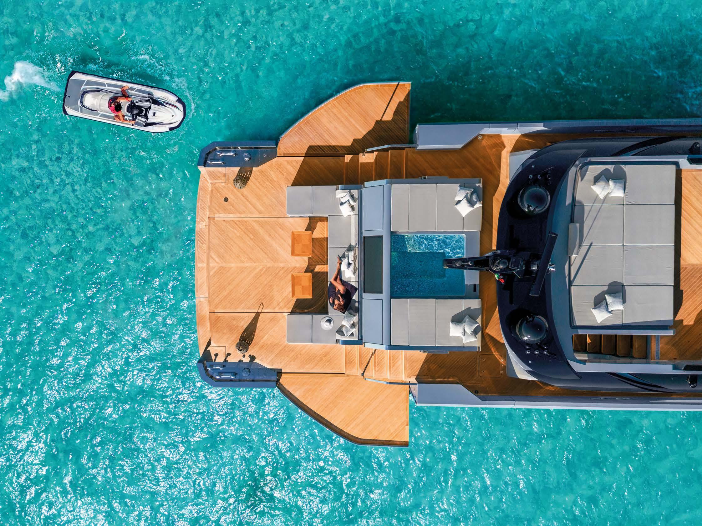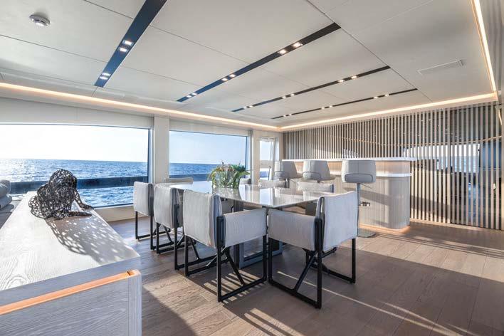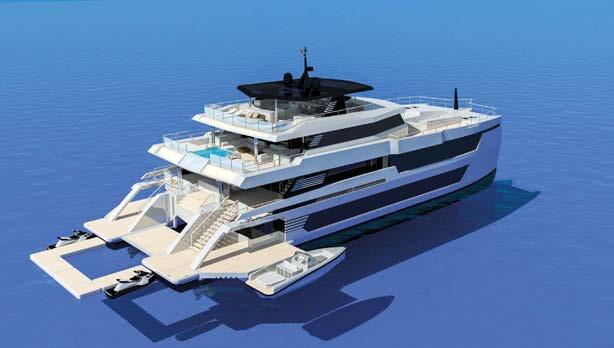 Cristiano Mariani’s CM rchitect proposes the concept of a 40 metre aluminium catamaran with the characteristics of an explorer, o ering great practicality combined with solid construction and the possibility of using hybrid engines.
