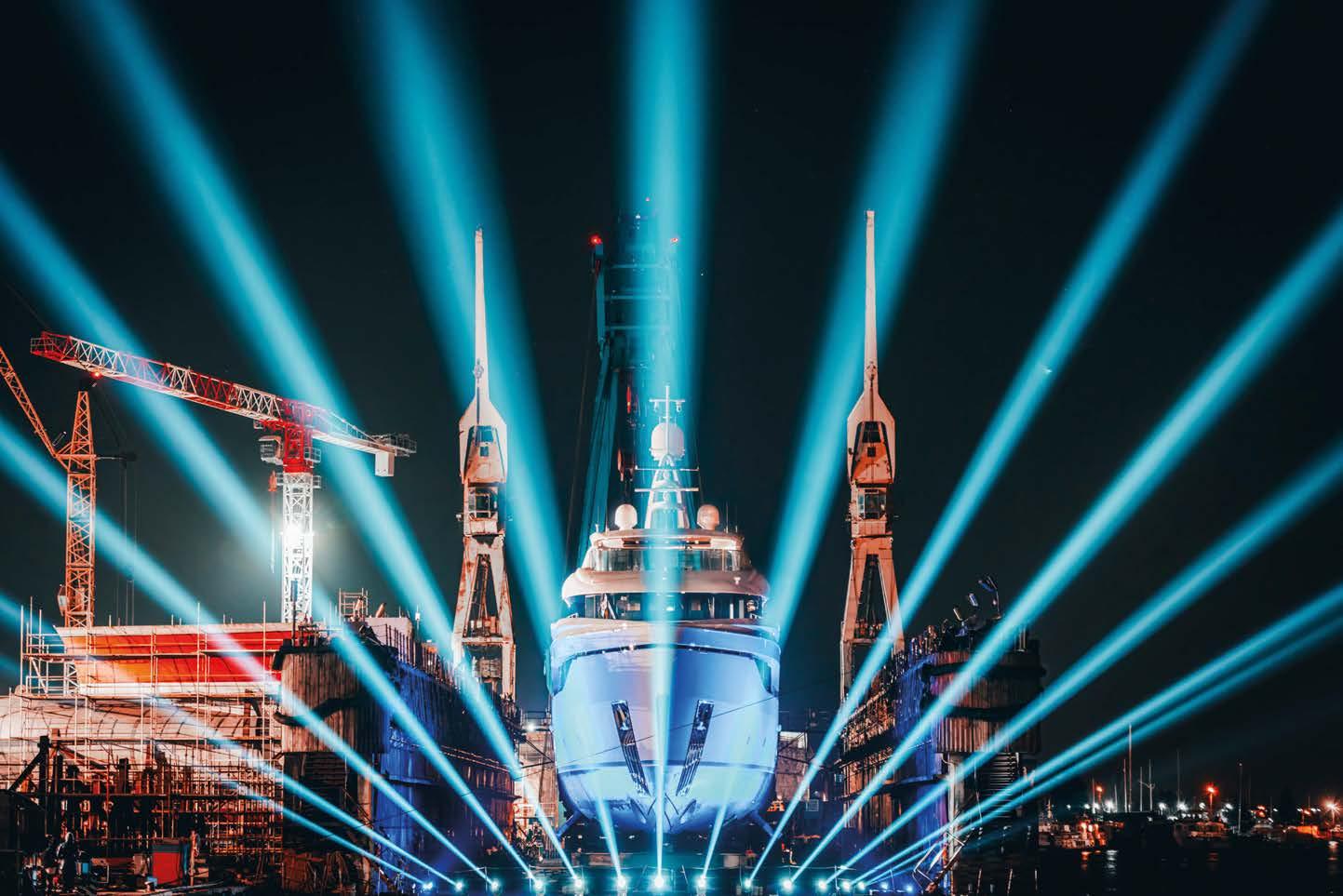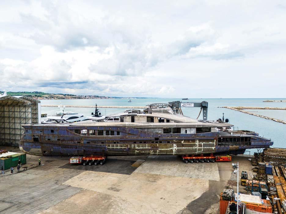 ISA SPORTIVA 66 METRI, IN COSTRUZIONE AD ANCONA, È ENTRATA NELLA FASE DI ALLESTIMENTO. SCAFO IN ACCIAIO E SOVRASTRUTTURA IN ALLUMINIO, HA DUE MOTORI DA 2.560 KW CIASCUNO CHE PERMETTONO UNA VELOCITÀ MASSIMA DI 18 NODI.