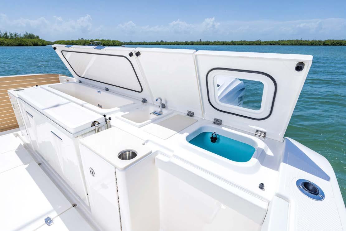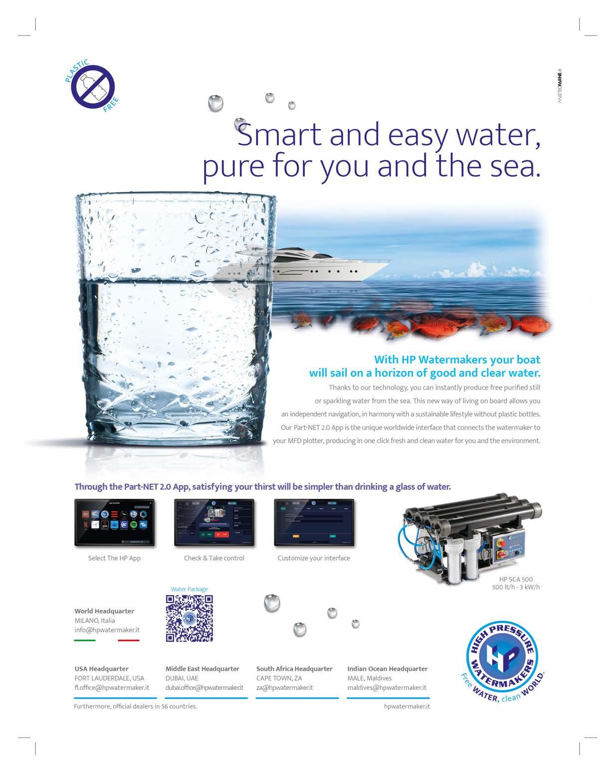 HP Watermakers sull’Invictus TT420, edizione speciale Vogue White La barca monta un dissalatore HP Sca 120-1 RP Tronic Amcs Part-NET in grado di produrre 120 l/h di acqua dolce.