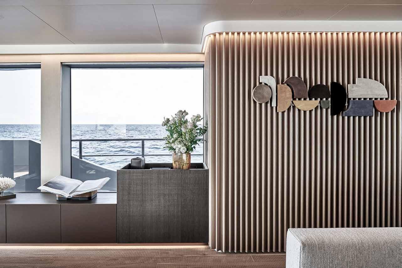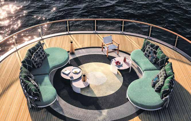 Thun stressed the urgency of responding to the need for happiness. «You can only experience new awareness if you dare to do something new and cross boundaries. It's a question of achieving the right balance of beauty, practicality, cleanliness, advanced technology and sensitivity. This ensures that the spaces will not just be practical, but above all beautiful, made using sustainable materials and processes that are not harmful to people or the environment». Matteo Thun's philosophy is also based on a process of subtraction, «Because reducing entails both technical and aesthetic durability. And a boat has to last over time and be beautiful forever». The ideal result must be a boat that develops the “return to nature” using technological solutions designed to reduce emissions, which embraces the sea and a new wellbeing-oriented lifestyle. Well-being and happiness can be sought everywhere, in everything we do. Some people have made them their reason for living, internalising every single element, while others have these feelings in their DNA and translate this tangibly through their work. Paola Lenti is one of them. Her life model materialises in her creations that we see on board numerous yachts, expressing peace, harmony and joie de vivre. The inner balance that she conveys is an element no one wants to renounce. Thun and Lenti (along with others) can also be described as genuine interpreters of the Italian production that has enjoyed such well-deserved success over recent years. A success that reveals some very interesting data as far as the Italian maritime industry is concerned. According to The State of the Art of the Global Yachting arket study prepared by eloitte for onfindustria autica, 0 turnover forecasts for the Italian yachting industry are once again in double figures, growing between 1 and 0 per cent. his study, conducted by ommaso astasi, shows that more and more new users have turned to boats precisely in search of peace, happiness and greater harmony with nature. The average age of owners has also fallen significantly, while the period spent on board has increased. Against this backdrop, the global boating market is expected to reach € billion by 0 1, and around 0 per cent of this regards in the production of new boats. he market value of global new boat production in 0 1 amounted to € . billion, up 10.7 per cent