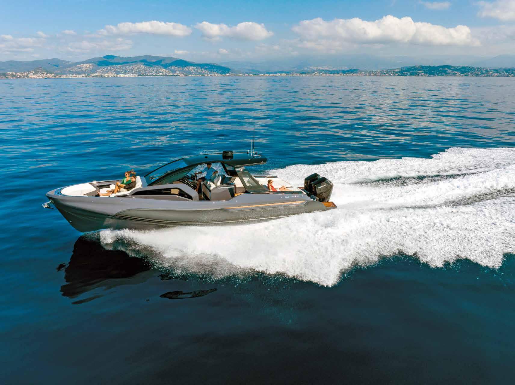 Length 14.1m, Beam 4.22m, Draft 1.04m, Power 3x Mercury 450hp Outboards Speeds 35 Kts / 42 Kts Accommodations 4 Guests. Asking $899,999 U.S. u FGI Yacht Group 2400 E Las Olas Blvd Fort Lauderdale, FL 33301-1582