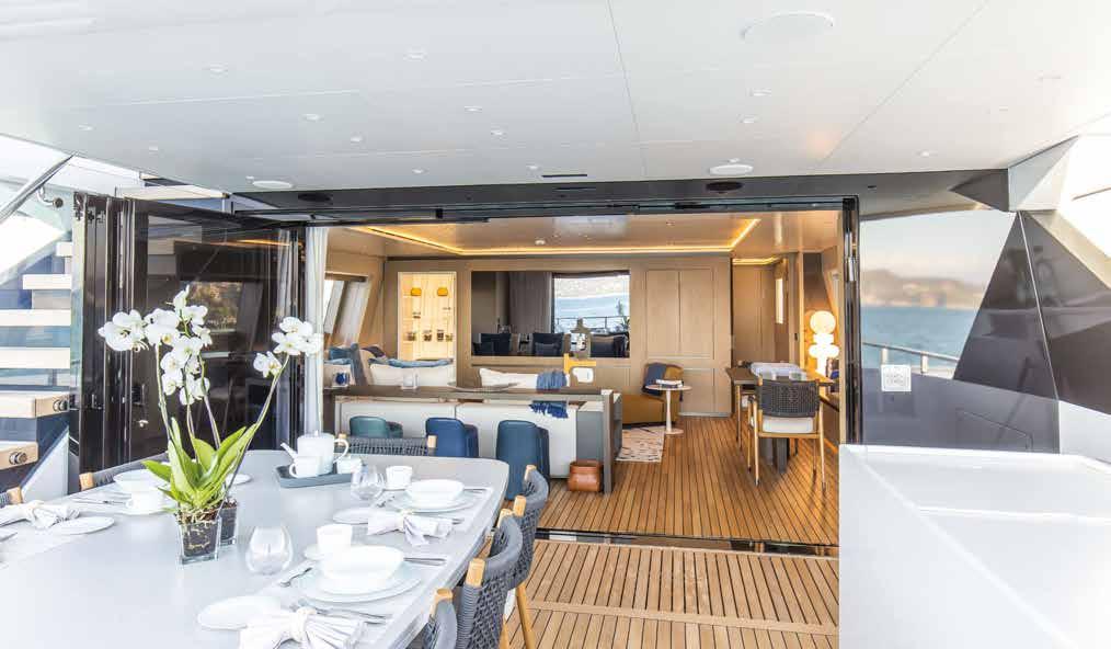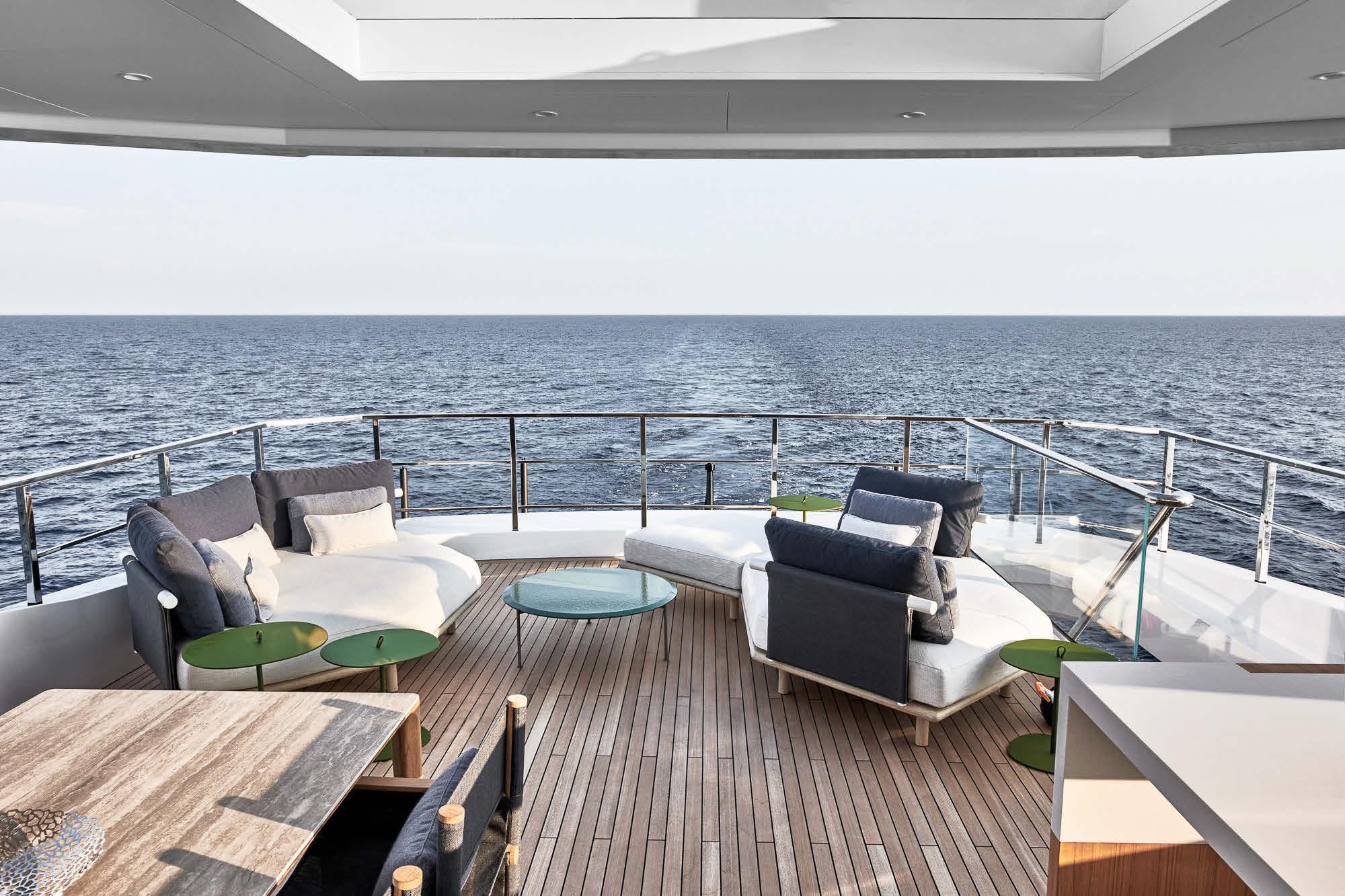 hat has changed among boat owners around the world when it comes to owning and using a boat? There may be numerous answers, but the one I like the most is linked to the quest for the peace and happiness you can find when out sailing and anchoring your boat amid unspoilt nature. Happiness in a boat can be made up of moments, episodes in which you experience intense emotions, which provide a measure of the beauty of life. Peace is a relatively stable inner condition, which we experience as a balance that has been achieved through maturity and life experience. This state of mind allows us to lead a satisfying existence, without excessive mood fluctuations that can otherwise be triggered by external events. Over recent years the boat has revealed itself as a highly effective tool for achieving peace and happiness. It is no coincidence that many shipyards have involved designers in the creative process to provide a specific response to these issues. hen designing the interiors for Azimut Yachts' new Seadeck collection, Matteo