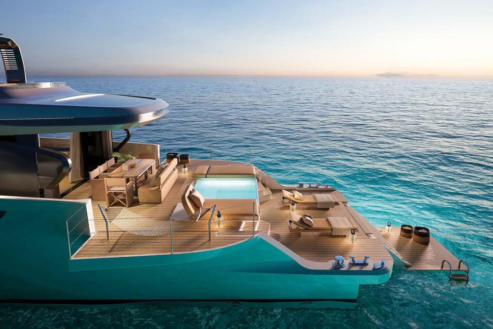 Immaginato come yacht ideale per accedere alla nautica da diporto con propulsione elettrica, il Sialia 45 Sport è un day cruiser che pu essere personalizzato in base alle precise preferenze dell’armatore. La costruzione in fibra di carbonio garantisce un’ottima velocit e tanta autonomia. Lo scafo, progettato dallo studio Petestep, consente di navigare alla velocit massima di 43 nodi.