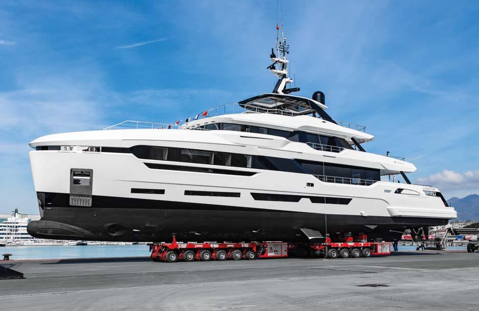 IL QUINTO SCAFO DELLA LINEA DOM 133 DISEGNATA DA STEFANO VAFIADIS, È STATO VARATO DAGLI SCALI DEL PORTO DI CARRARA PER ESSERE TRASFERITO NEGLI STABILIMENTI SPEZZINI PER L’ALLESTIMENTO FINALE.