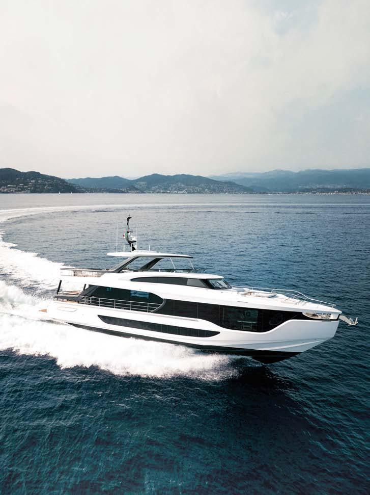 Year 2021, LOA 86 ft, Beam 20 ft, Horse Power 3,800 hp. Price: $5,489,000 u Florida Yachts International 305-239-4978 www.fyiyachts.com