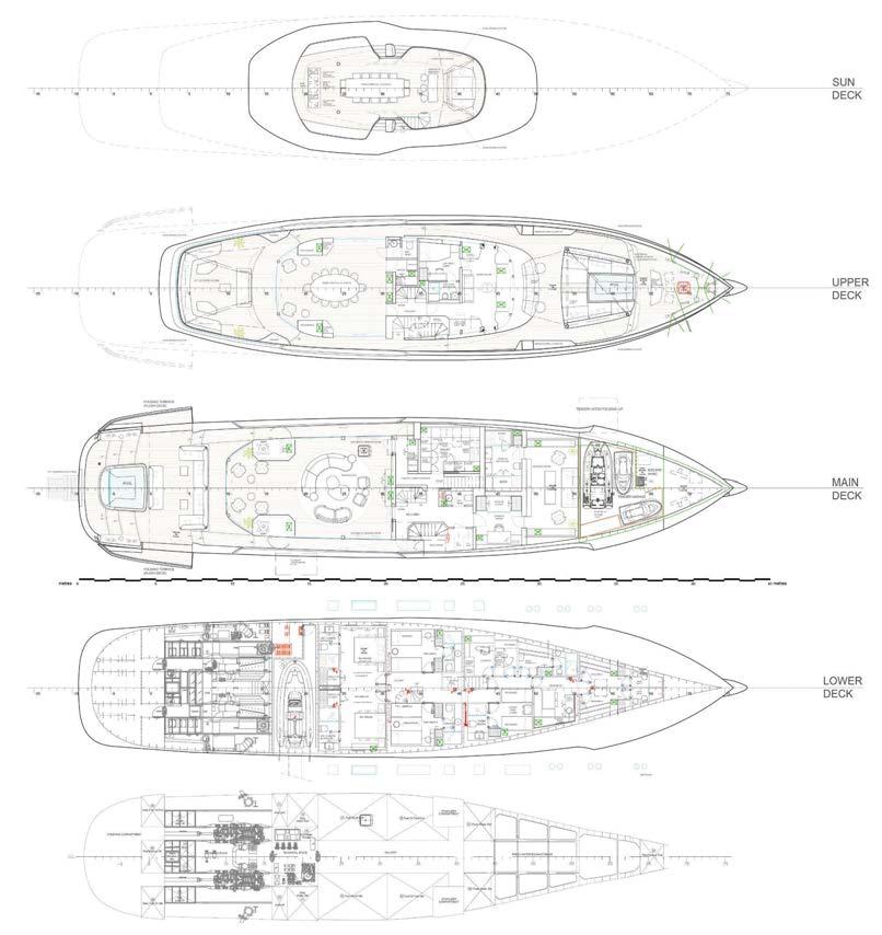LOA 29.72m $8,995,000, Cruising Speed: 10 kn Maximum Speed: 12 kn Beam: 24’ 0’’, Cabins: 5 Heads: 6, Maximum Speed: 12 kn. Asking Price: $8,995,000 u Northrop & Johnson www.northropandjohnson.com