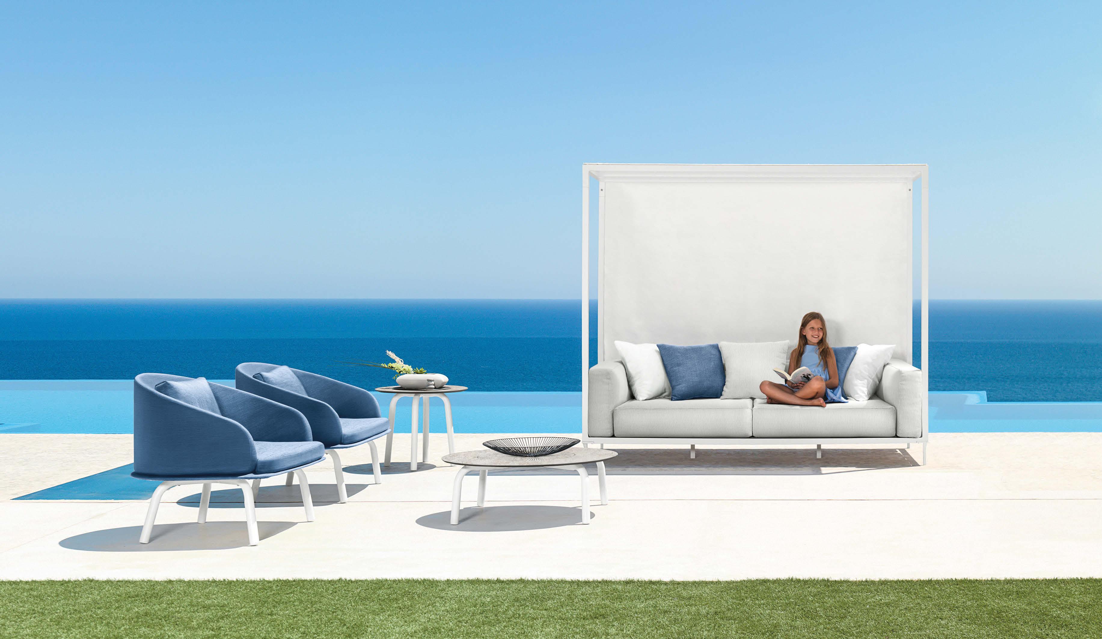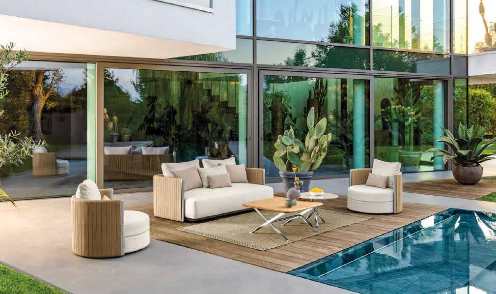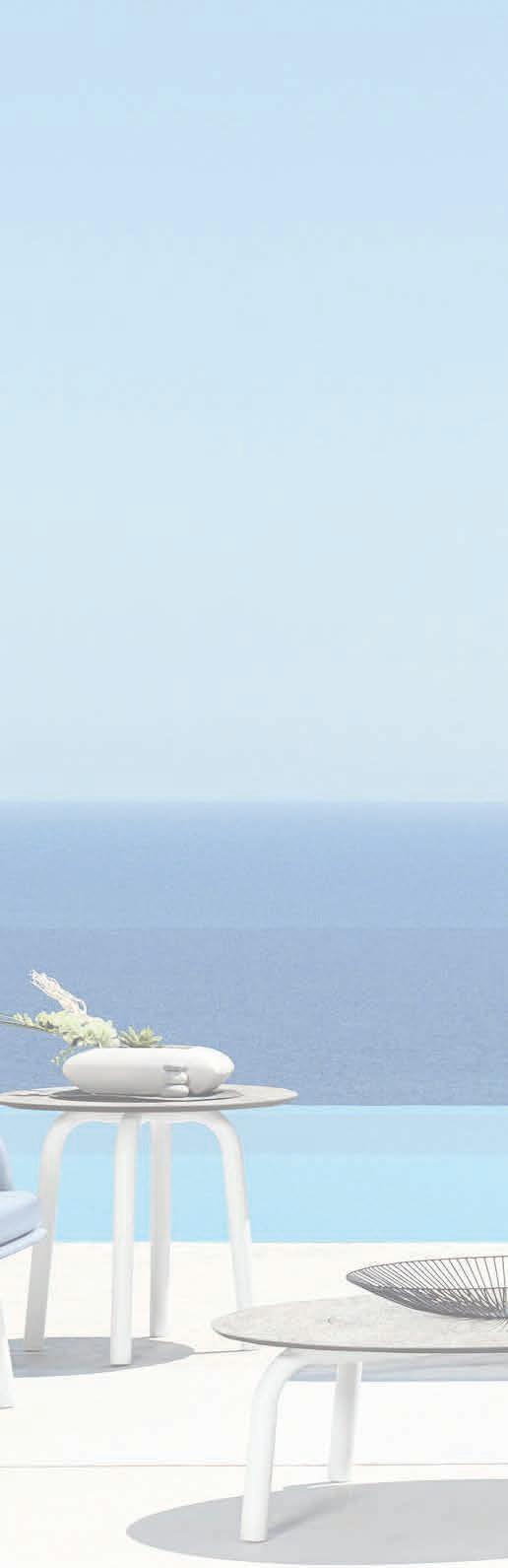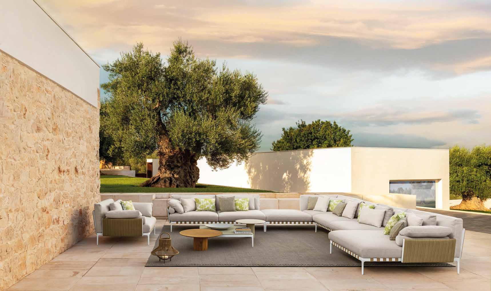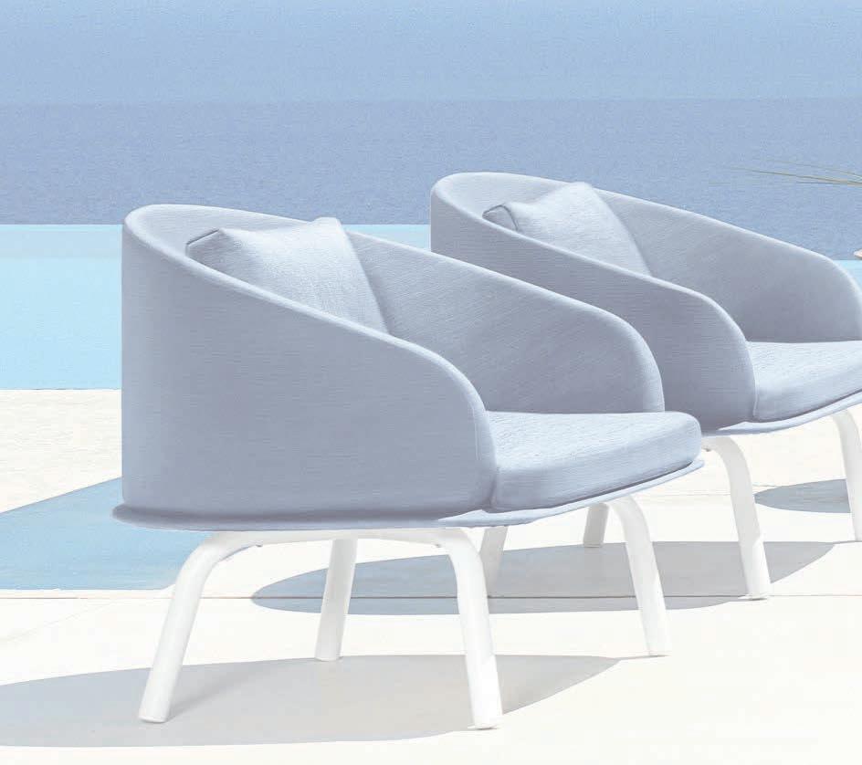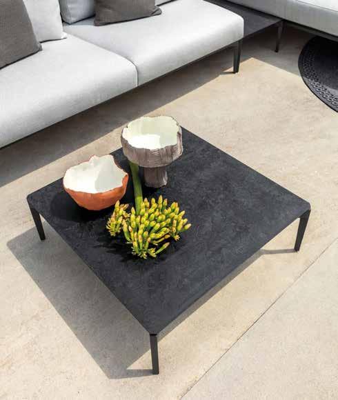Harbour, designed by Francesco Rota for Paola Lenti, to furnish outdoor spaces, features a stainless steel AISI 304 structure att arnished in the colours i ory or raphite. ac and ar rest co erin s are in aris fabric. The re o able cushions are in polyester fibre and stress resistant polyurethane. The external upholstery is available in the Luz, Rope T, Brio, Thea and Wara fabrics.