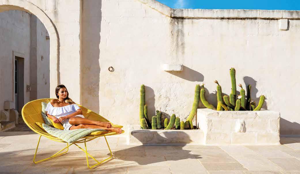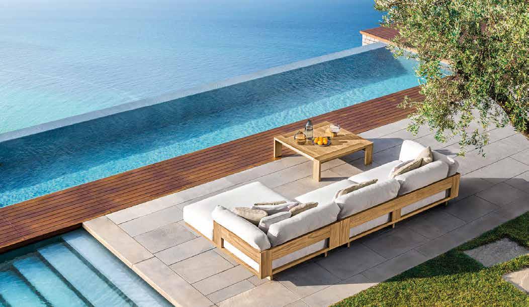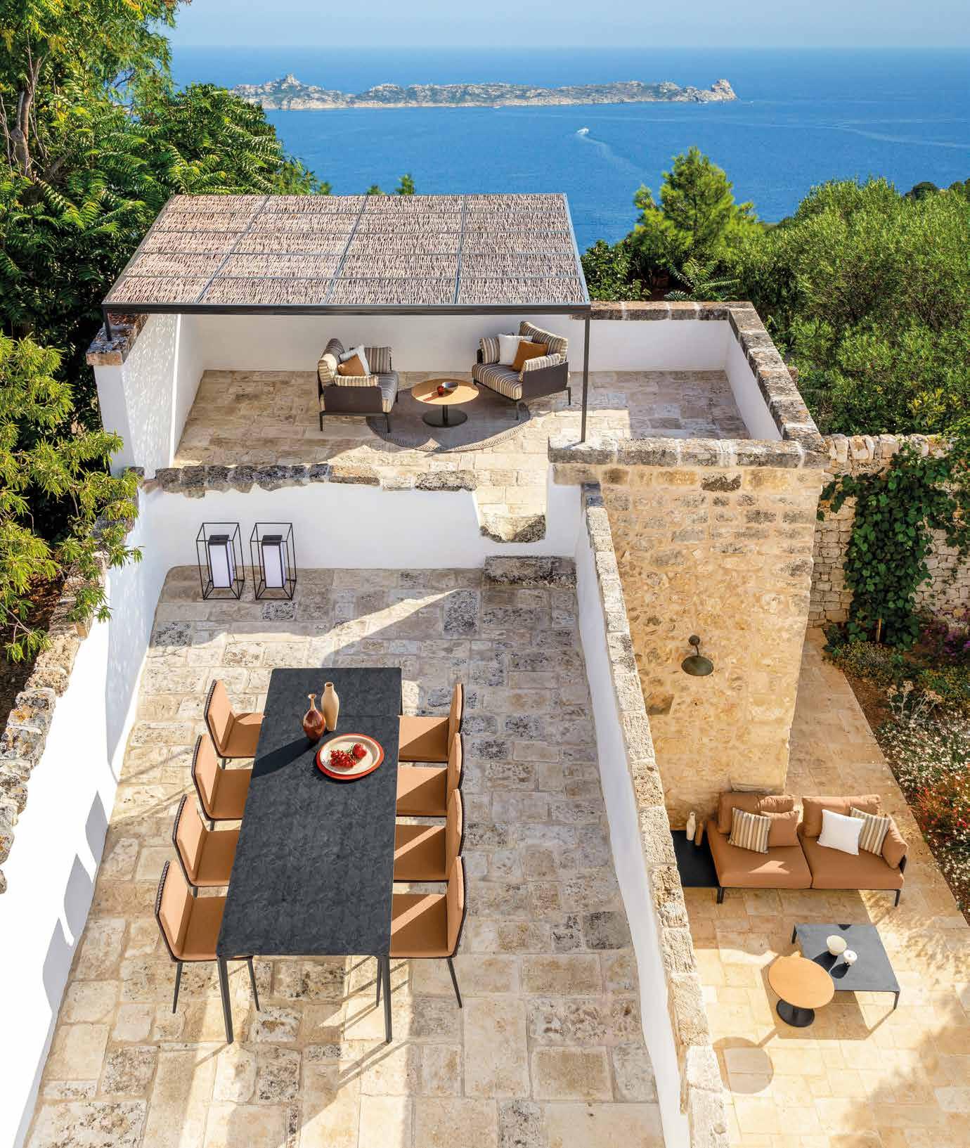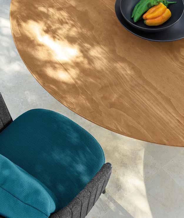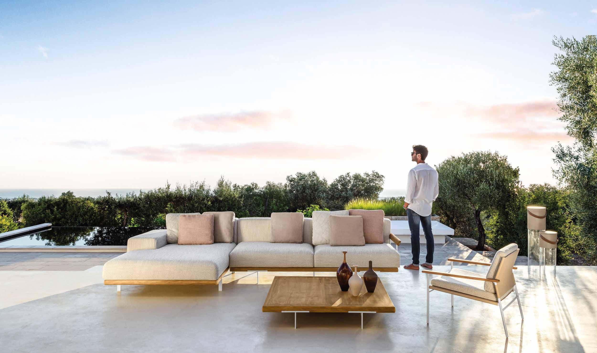 Harbour, designed by Francesco Rota for Paola Lenti, to furnish outdoor spaces, features a stainless steel AISI 304 structure att arnished in the colours i ory or raphite. ac and ar rest co erin s are in aris fabric. The re o able cushions are in polyester fibre and stress resistant polyurethane. The external upholstery is available in the Luz, Rope T, Brio, Thea and Wara fabrics.