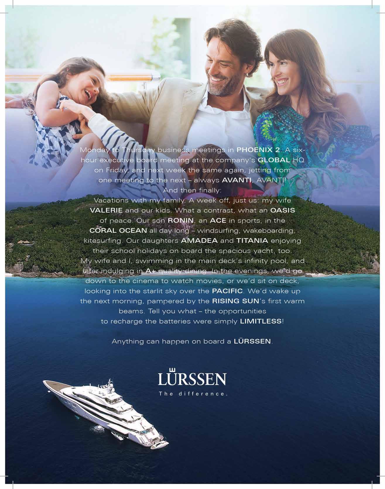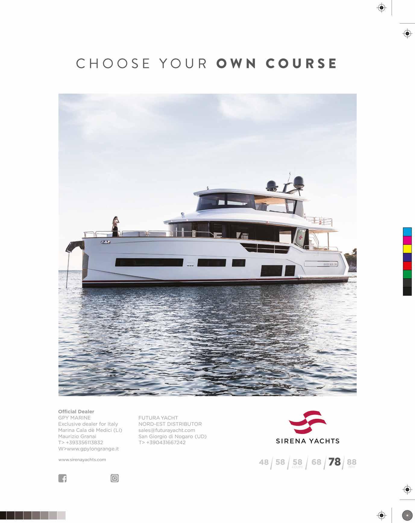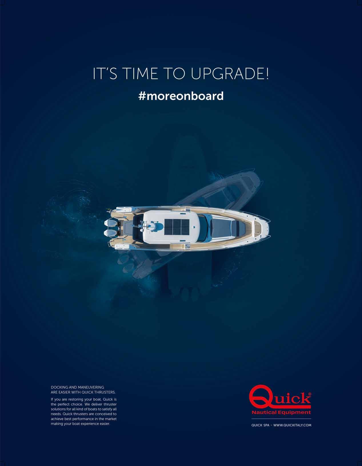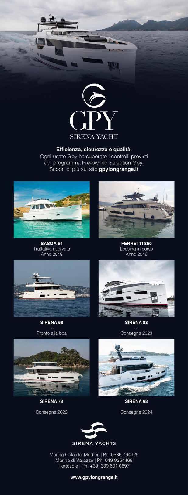 How to subscribe - Subscription: International Sea Press Srl, Viale Brianza, 17 - 20821 Meda, tel. +39 0362 344140. Subscription rates (one year): Italy € 75,00 - Europe € 175,00 - all over the world € 210,00. Published monthly. All rights reserved: reproduction in whole or in a part of any article without prior written permission from the publisher is strictly prohibited. Printed in Italy.