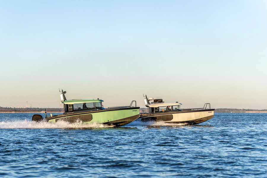 Arksen presenta due barche di 28 e 30 piedi di lunghezza. Rappresentano una day boat e una weekender con carene disegnate per navigare in tutte le condizioni meteomarine. La motori a ione massima fino a 500 cavalli totali.