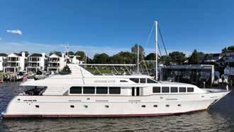 Year: 2001, LOA: 102 ft, Beam: 22 ft 3 in, Max speed: 24 kn, Cabins: 4, Price: US$1,399,000