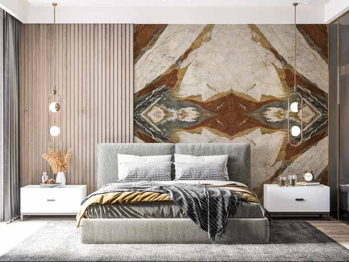 The Brèche Fantastique marble and the Amazonite quartzite from the Exclusive Collection are part of the Antolini portfolio, which includes over 85 exclusive materials. This selection is considered the non plus ultra a on natural stone claddin s in ter s of aesthetic stren th refine ent hi h technolo ical performance, and is very much valued by planners and interior desi ners.