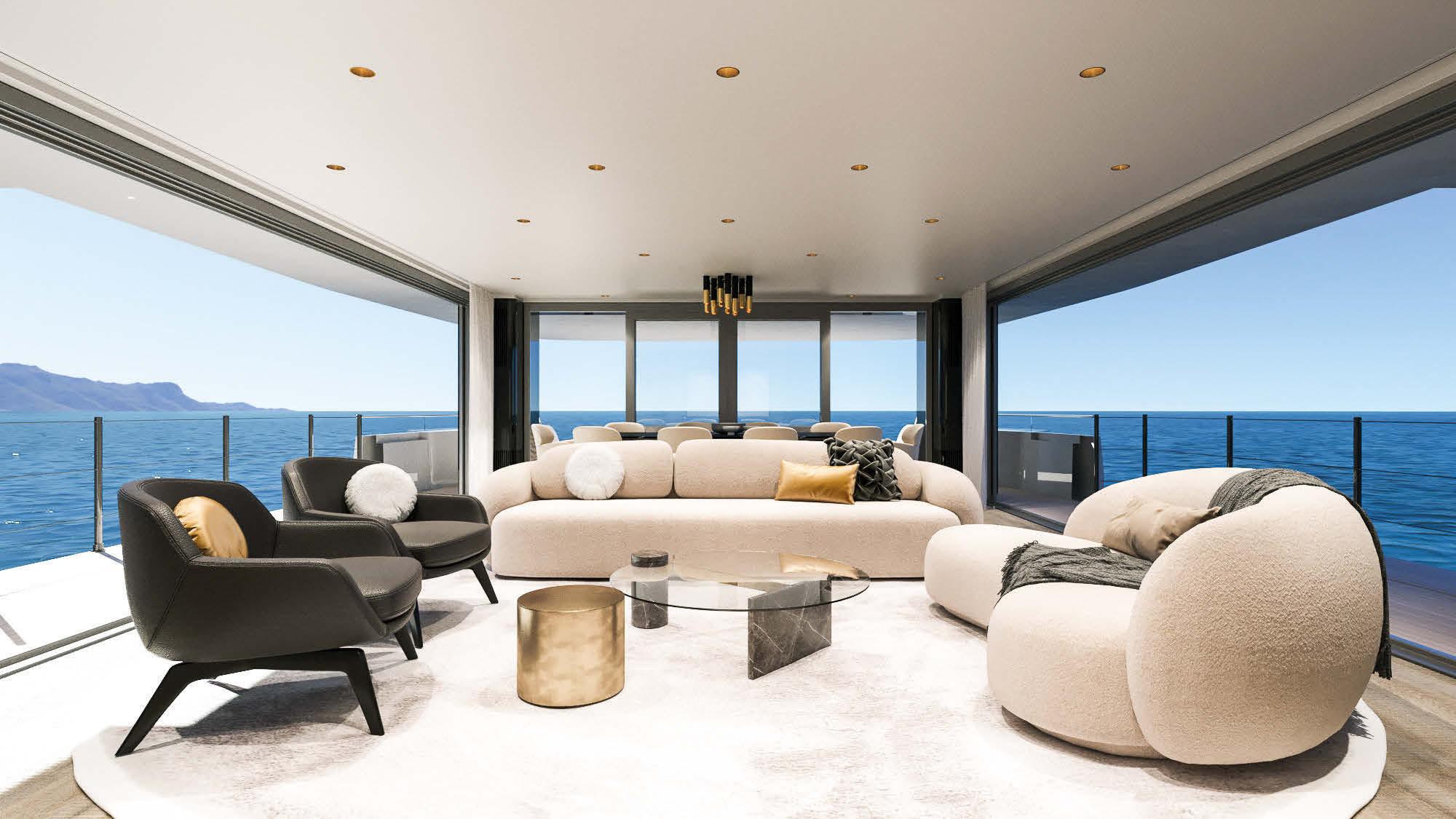Silent Yachts ha stretto una partnership con il produttore di velivoli Xcraft XP4 eVTOL. L’XP4 può atterrare sul top del Silent 120, dove i grandi pannelli solari scivoleranno fuoribordo a sinistra e a dritta per rivelare una piattaforma di atterraggio touch-and-go.