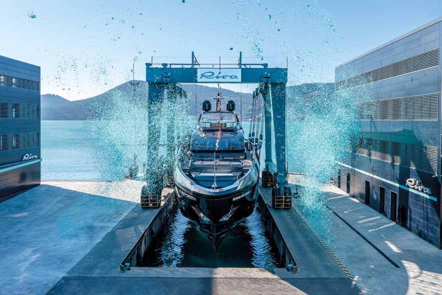 The second Riva 130’ Bellissima has been launched in La Spezia, in the shipyard dedicated to the production of Riva boats from 70 to 130 feet. The yacht, which is 40 meters long with an 8-metre beam, bears the signature of Mauro Micheli and er io eretta fo n ers of fficina taliana Design. This is the design studio which has overseen all Riva production over the past 27 years, in collaboration with the Product Strategy, presided over by the engineer Ferrari and the Engineering Department of the Ferretti Group.