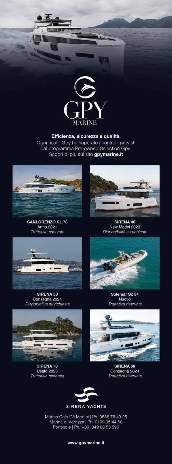 The 14th edition of the Porte Aperte all’Usato market exhibition will be held at the Aprilia boatyards on 16, 17, 23 and 24 March 2024. Very interesting o ers can be found because this is the ideal time for those who want to buy a boat, but also for those who have to sell it.