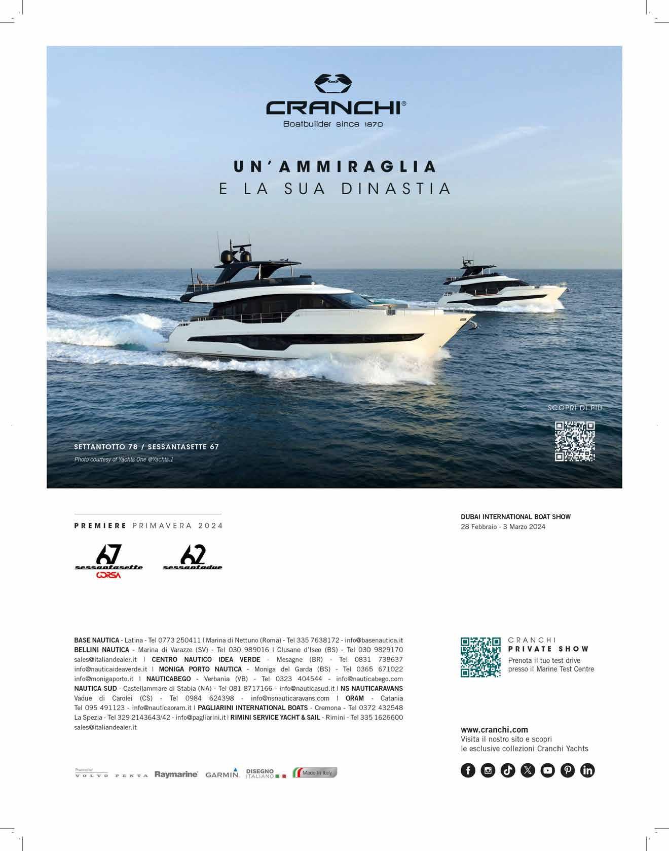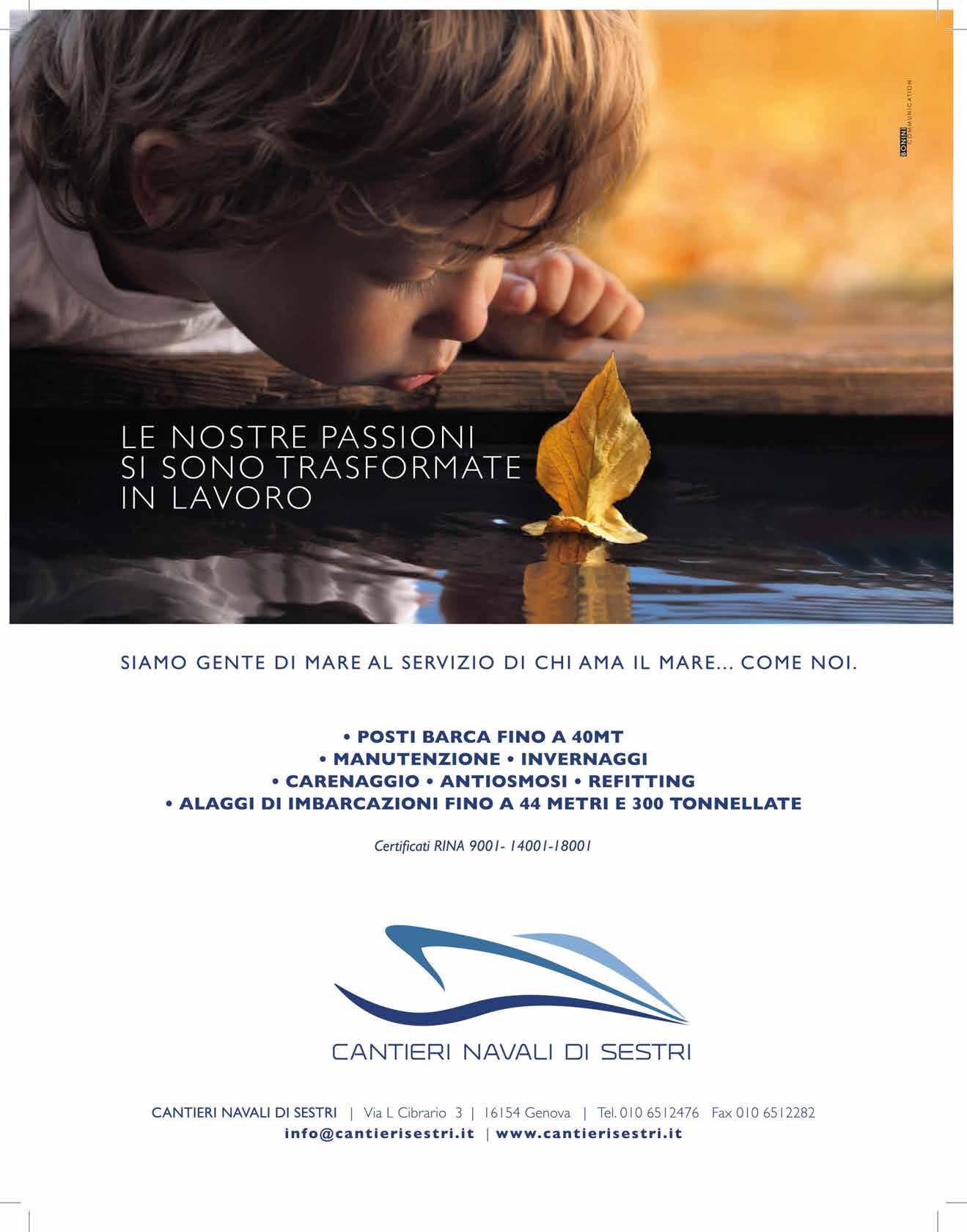 How to subscribe - Subscription: International Sea Press Srl, Viale Brianza, 17 - 20821 Meda, tel. +39 0362 344140. Subscription rates (one year): Italy € 75,00 - Europe € 175,00 - all over the world € 210,00. Published monthly. All rights reserved: reproduction in whole or in a part of any article without prior written permission from the publisher is strictly prohibited. Printed in Italy.