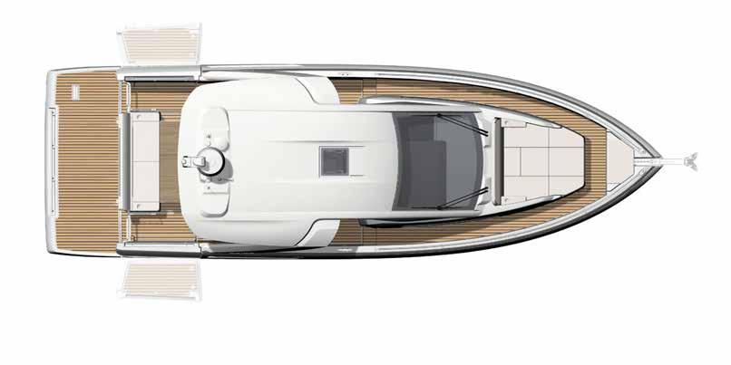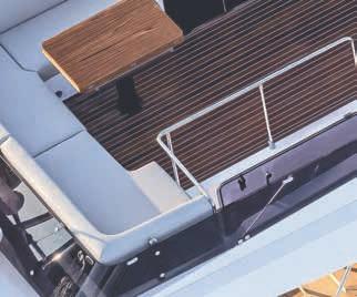 Prendisole fisso e garage per tender, ampia plancetta di poppa.