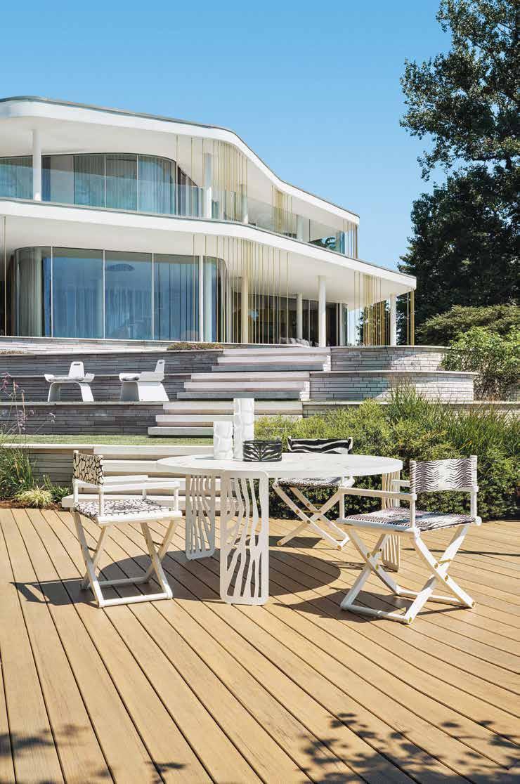 Roberto Cavalli Home Interiors presenta un tavolo scultoreo e scenografico. La struttura è in ferro calandrato, con un motivo tagliato al laser che richiama sia gli iconici temi animalier del brand, sia le dune del deserto, evocate dal nome. Il piano in gres porcellanato e l’uso di materiali tecnici rendono il pezzo funzionale all’utilizzo in esterni.