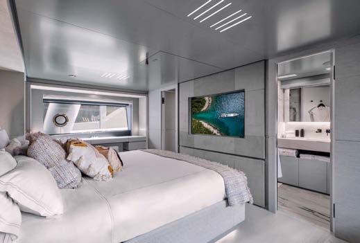 Nel nuovo Fountaine Pajot FP41, ogni spazio è stato progettato per coniugare comfort e convivialità in una disposizione c e em ific it in m re. I volumi sono generosi, la circo ione i i o etto a tutto baglio e la cucina aperta è collegata all’esterno.