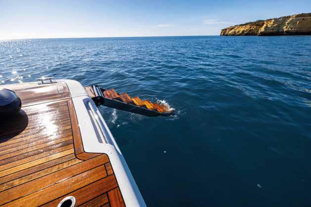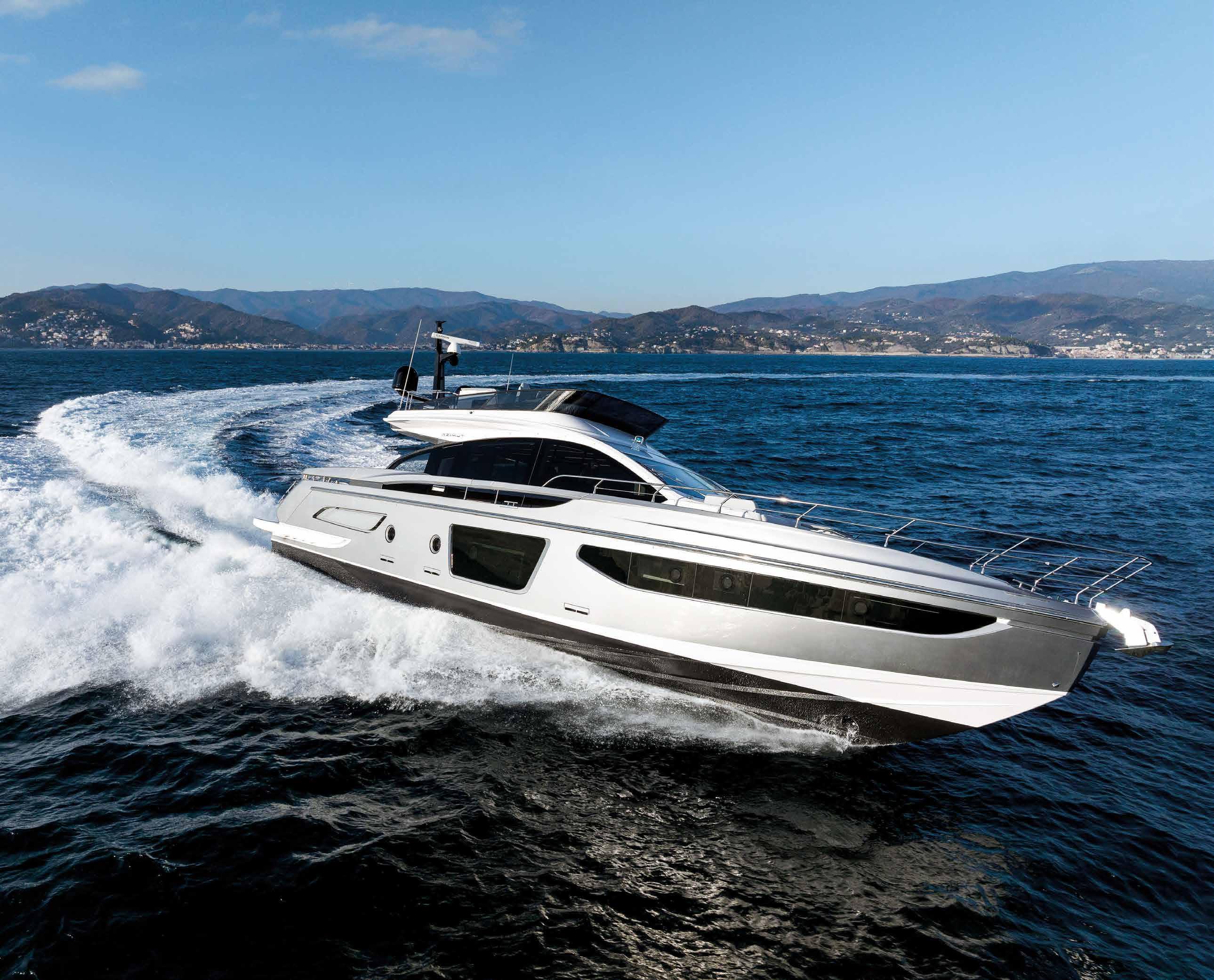 The Sessantadue 62 ft is the result of a stren thened collaboration between the ranchi achts esearch entre and the desi ner hristian rande. The vertical bow enhances the yacht’s nautical appeal. The en ine room houses two olvo enta si cylinder in line en ines, each producin , hp.