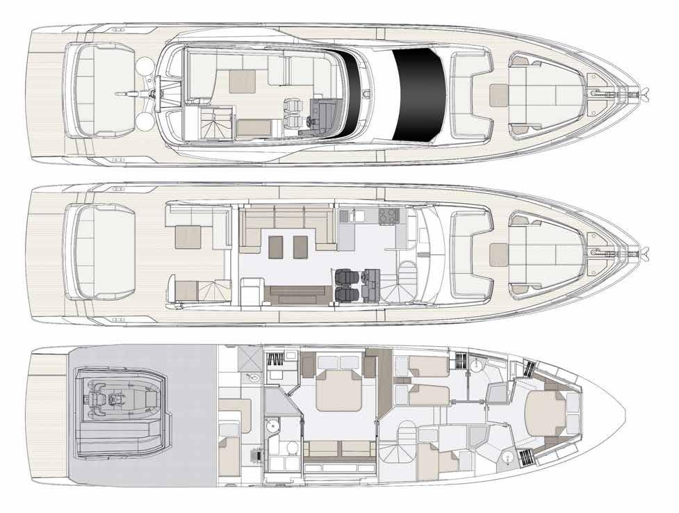 Con il Sessantadue 62 ft si raffor a la collabora ione tra il entro tudi icerche di ranchi achts e il desi ner hristian rande. a prua verticale consolida l’allure navale dello yacht. a sala macchine ospita due motori olvo enta a sei cilindri in linea di . cavalli di poten a ciascuno.