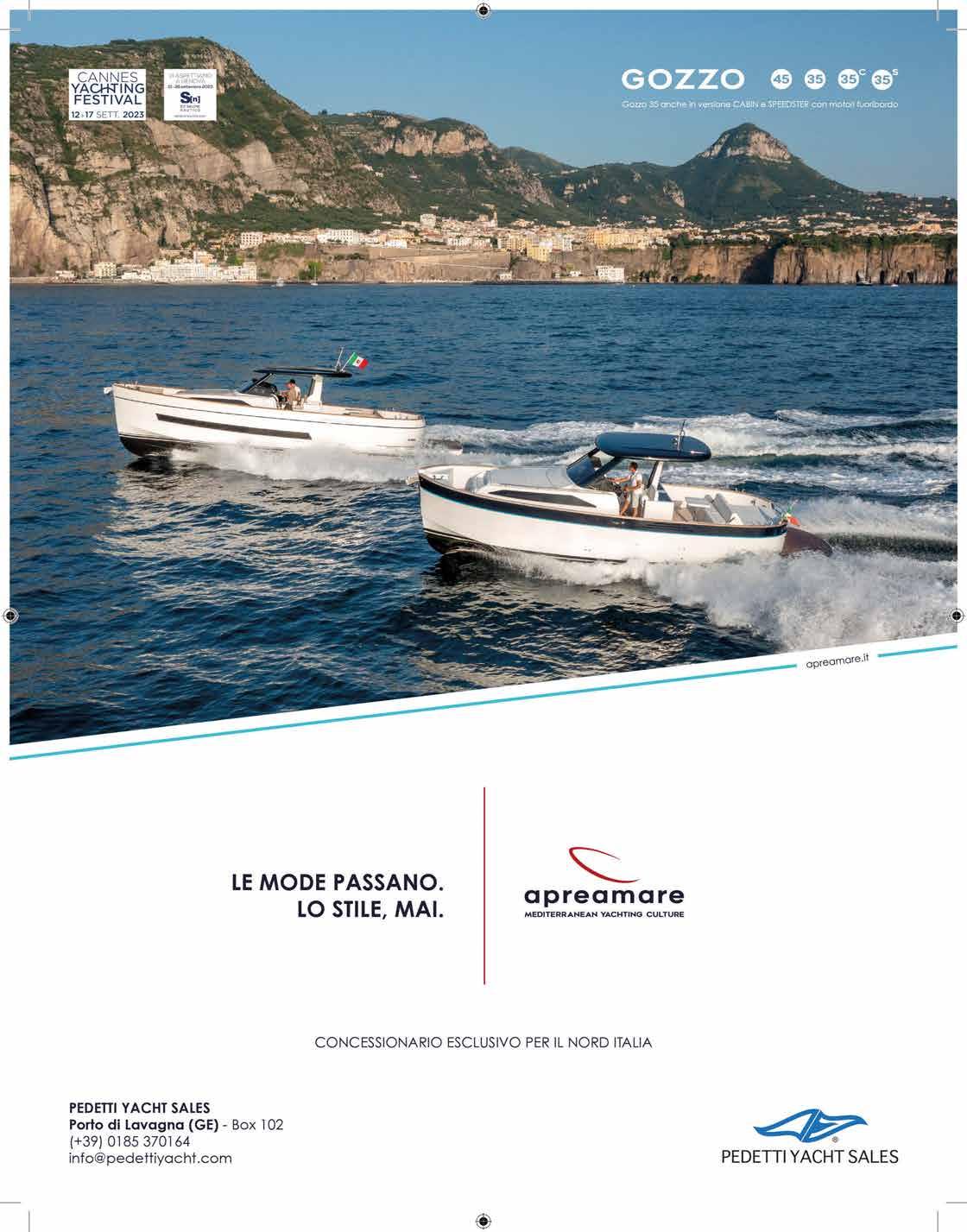 Apreamare has signed an exclusive dealership for Northern Italy with Pedetti Yacht, a solid company with branches all over Italy that has been supplying some of the most renowed international nautical brands since 1995. Pedetti Yacht, founded in 1995 by Giancarlo Pedetti, an entrepreneur who has passed on his passion to his son Davide, will supply the entire Apreamare range. The new Gozzo 35 Speedster will be presented in Cannes.