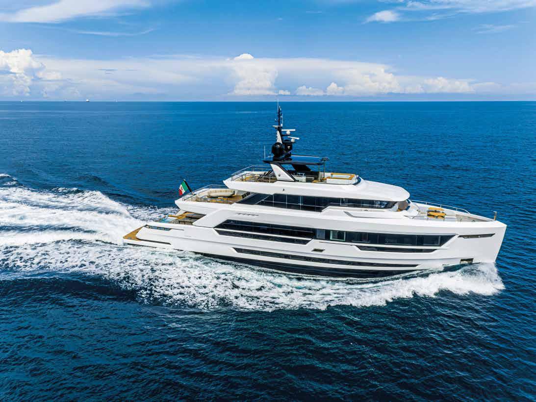 Ocean King presents the Ducale 120 Vãyus, a displacement yacht with a gross tonnage of 358 GT, a length of 36.80 metres and a beam of 8.50 metres. Both the exterior and interior design are by VYD Studio, while the naval architecture has been developed by Ginton Naval Architects and inNave Studio.